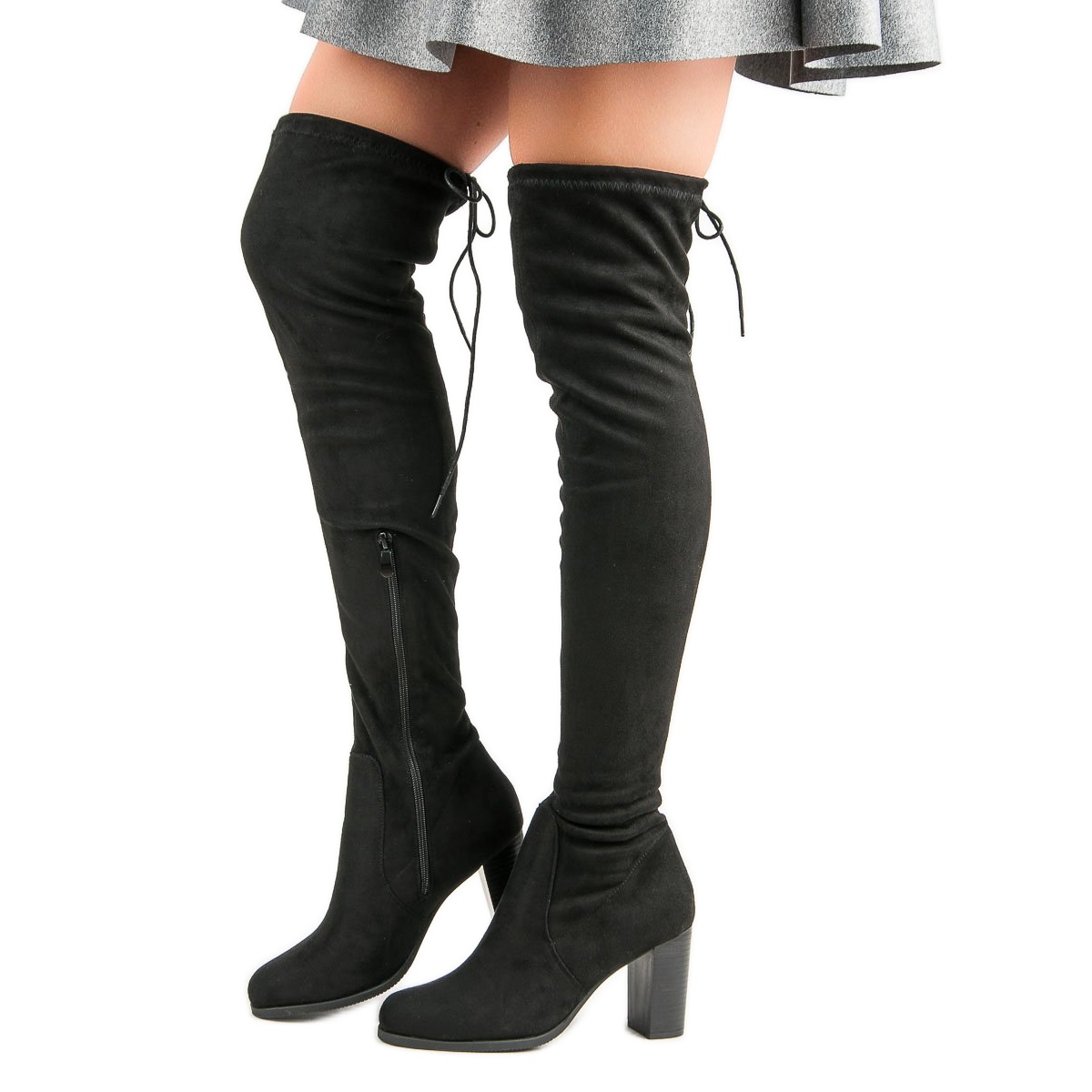 Saappaissa on polven yläpuolelle ulottuva yläosa, mikä tekee niistä täydelliset eri tyyleihin, ja pyöreä kärki lisää hienovaraisuutta. Slip-on lukon ja vetoketjun ansiosta kenkien pukeminen ja riisuminen on nopeaa ja kätevää.
