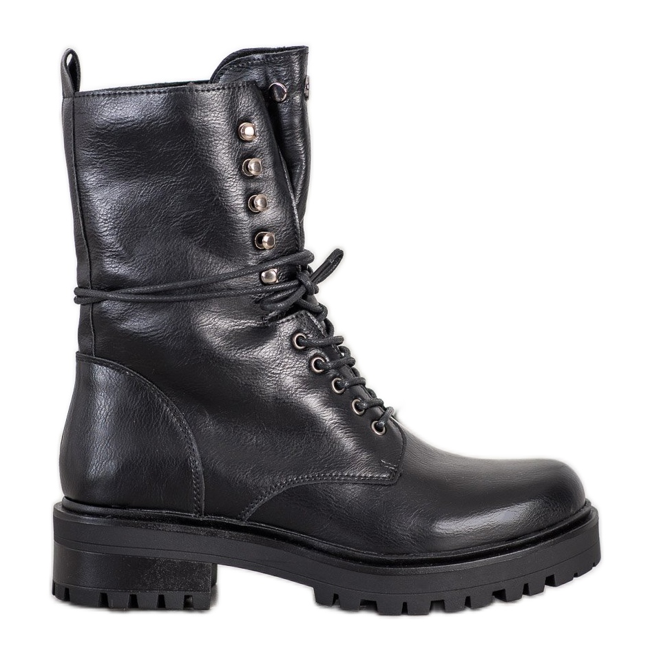Bovver-saappaat erottuvat edukseen koristeellisilla elementeillä, jotka ovat strassit, jotka korostavat niiden rock-ilmettä. Korkea päällinen (18-19 cm) ja eristys tekevät kengistä täydelliset syksyyn ja talveen antaen lämpöä ja suojaa kylmältä.