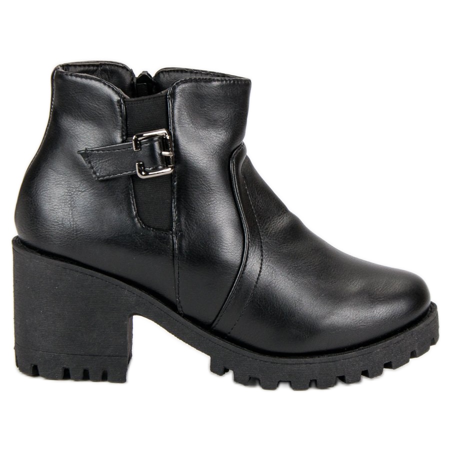 Jäykistetyn kantapään ja rakenteellisen päällisen ansiosta ne tarjoavat käyttömukavuutta ja vakautta. Koristeellinen solki lisää luonnetta, ja pyöreä kärki tekee niistä erittäin universaaleja. Saappaat on varustettu 2 cm korkealla alustalla ja 7,5 cm lohkokorolla, mikä mahdollistaa optimaalisen jalantuen.