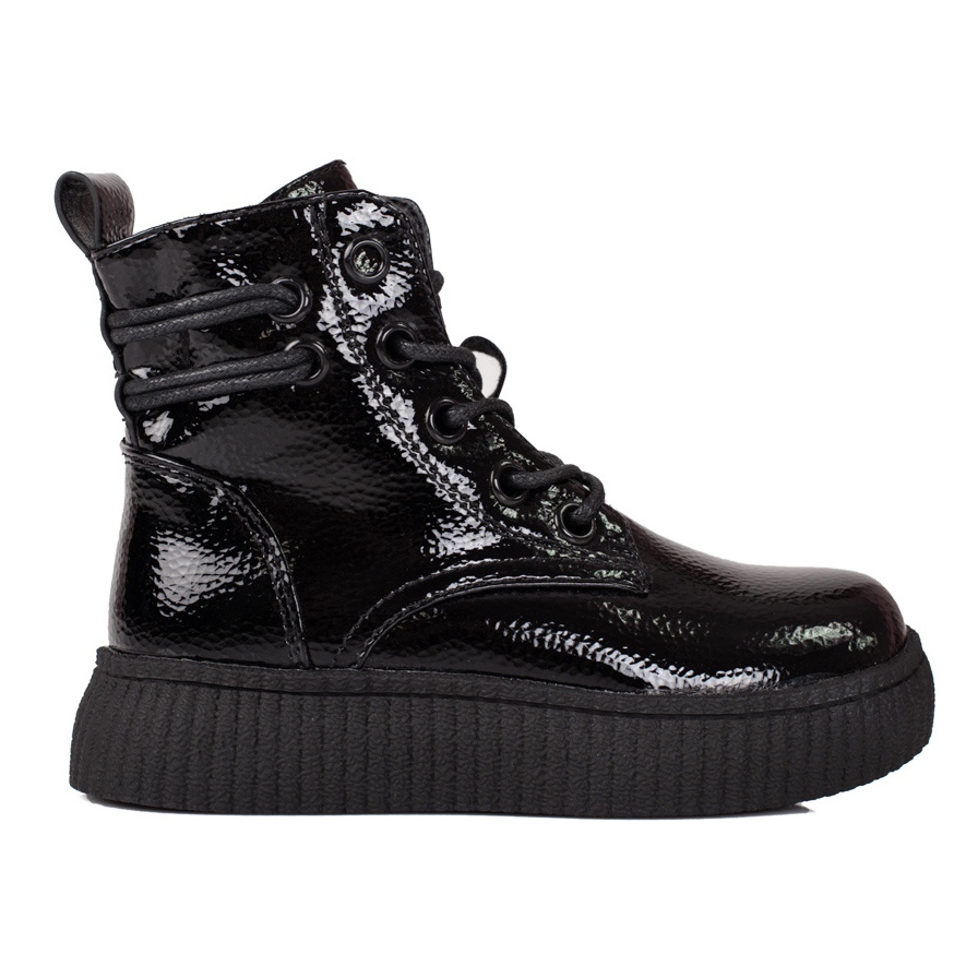 Yksityiskohdat: Mustat saappaat tytöille Shelovet-alustalla