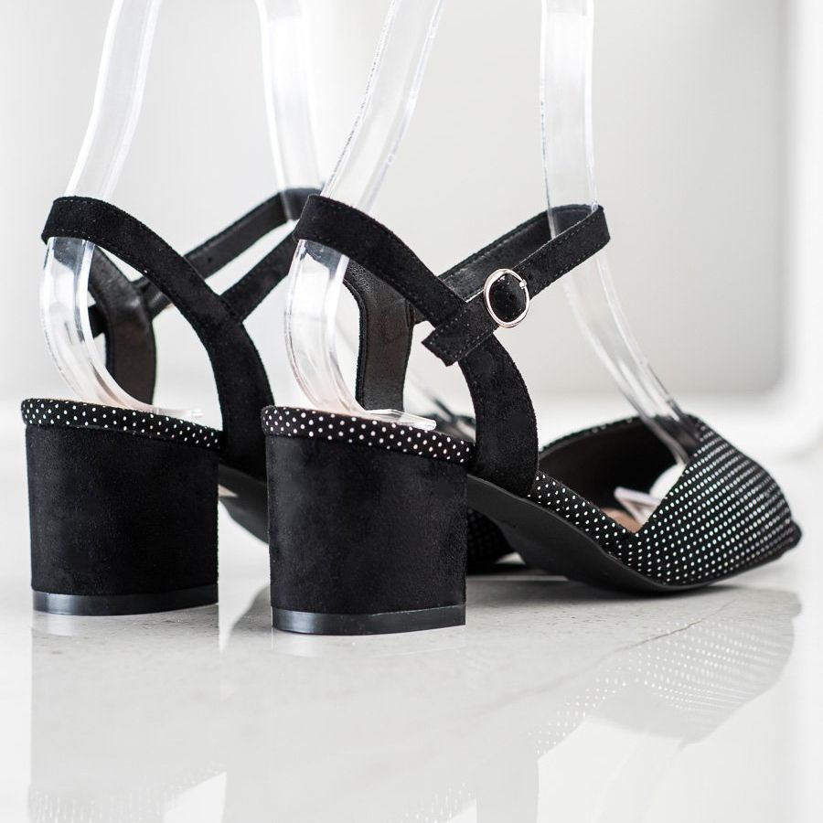 Löydä eleganssia ja mukavuutta Sergio Leonen mustissa korkeakorkoisissa sandaaleissa. Nämä ainutlaatuiset naisten kengät on valmistettu huolellisesti ekologisesta mokkanahkasta, mikä antaa niille paitsi houkuttelevan ulkonäön myös huolehtimista ympäristöstä. Ilman kärkeä ja kantapäätä ne tarjoavat vapautta ja hengittävyyttä, jotka sopivat täydellisesti kevät- ja kesäpäiviin.