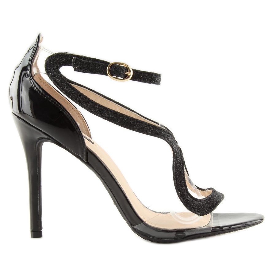 Löydä eleganssia ja tyyliä mustilla korkeakorkoisilla sandaaleilla 1443 musta! Nämä vaikuttavat naisten sandaalit ovat ihanteellinen tarjous naisille, jotka haluavat korostaa naisellisuuttaan ja ainutlaatuista makuaan. Niille on ominaista läpinäkyvät sivut, jotka lisäävät keveyttä ja hoikka 11 cm korkea kantapää, joka tarjoaa upean vaikutelman pitkistä jaloista.