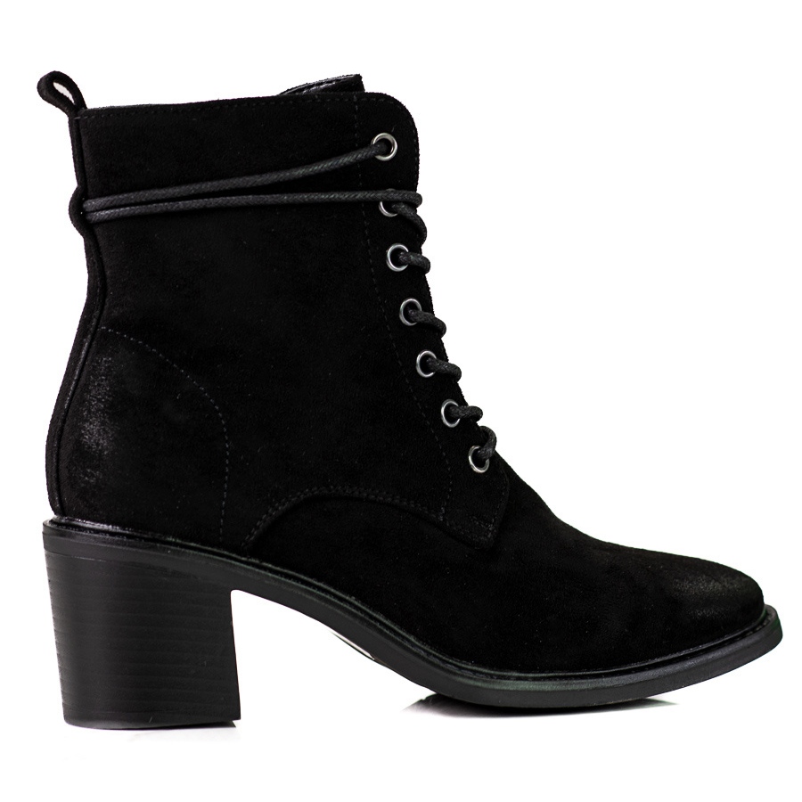 Mustat Shelovet-nauhoitetut naisten saappaat ekologisesta mokkanahkasta