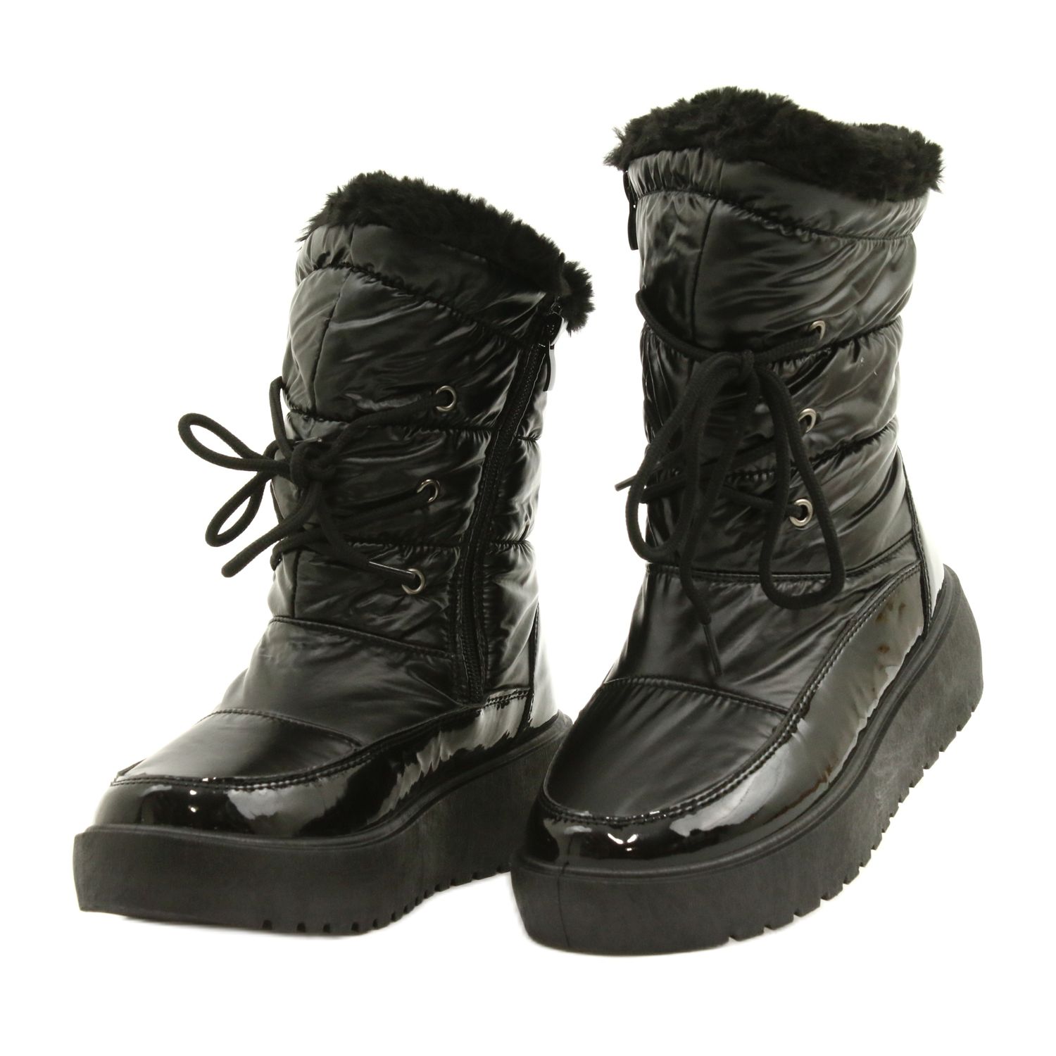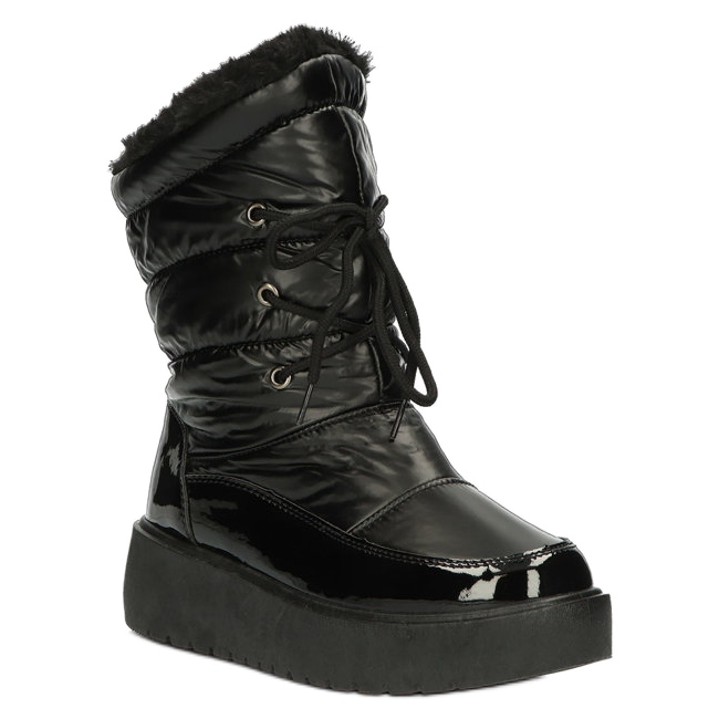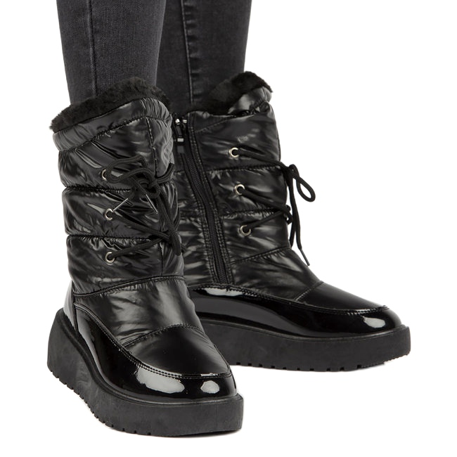Niiden litteä 4,5 cm korkea kantapää ja urheilullinen päällinen takaavat mukavuuden ja vakauden käytön aikana. Nämä vetoketjulla ja nauhoilla kiinnitetyt lumisaappaat houkuttelevat huomiota modernilla tyylillään, ja universaali musta väri tekee niistä sopivan mihin tahansa talvityyliin.