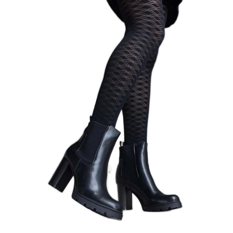 Löydä Motena -pylvään ainutlaatuiset mustat liukukengät, jotka ovat ihanteellinen yhdistelmä tyylikkyyttä ja mukavuutta. Laadukkaasta ekologisesta nahasta valmistettua saappaat ilahduttavat minimalistisesta suunnittelustaan, joka sopii jokaiseen moderniin vaatekaappiin. Korkea kantapää, jonka korkeus on 9,5 cm, ei vain optisesti pidentää jalkoja, vaan antaa myös koko muotoilun tyylin.