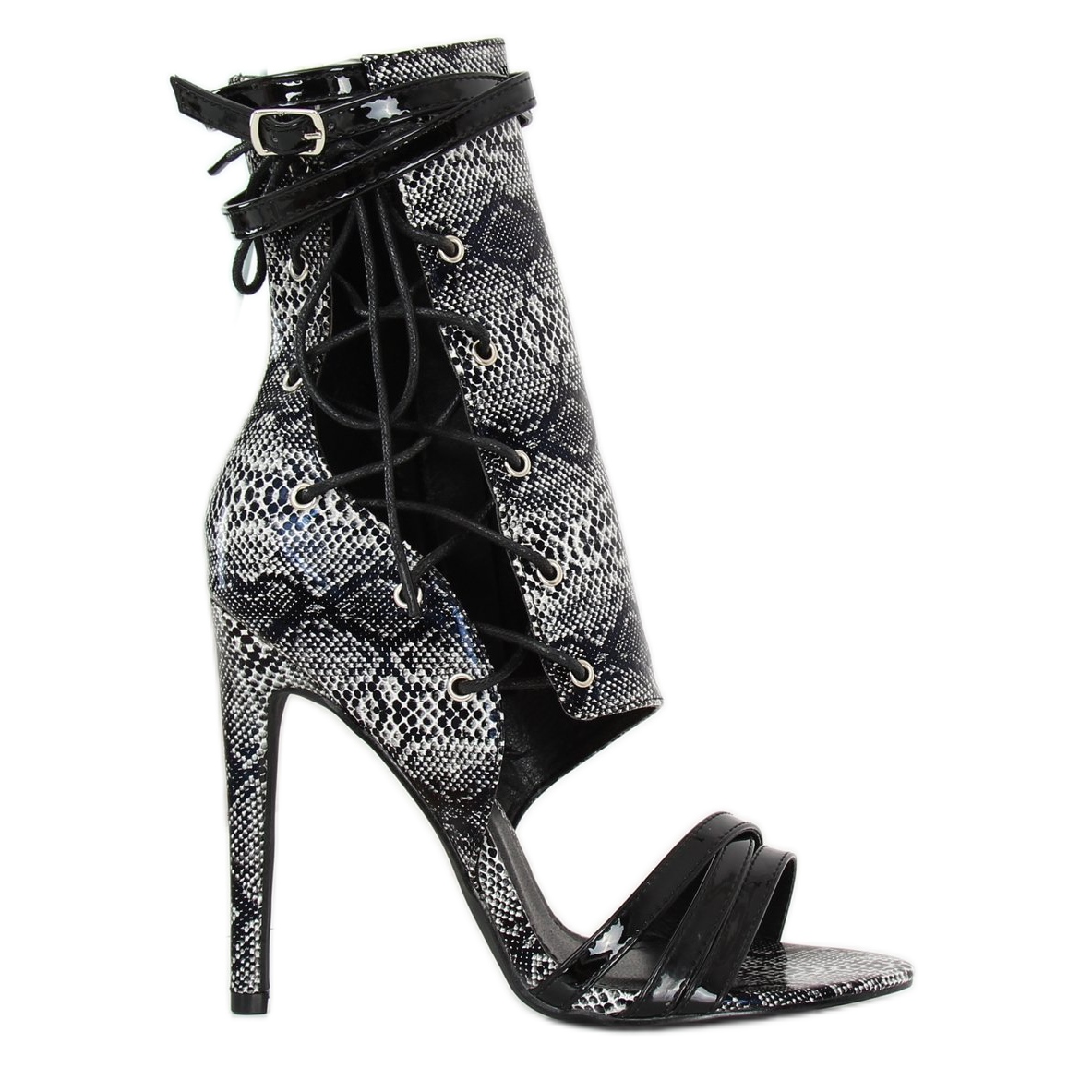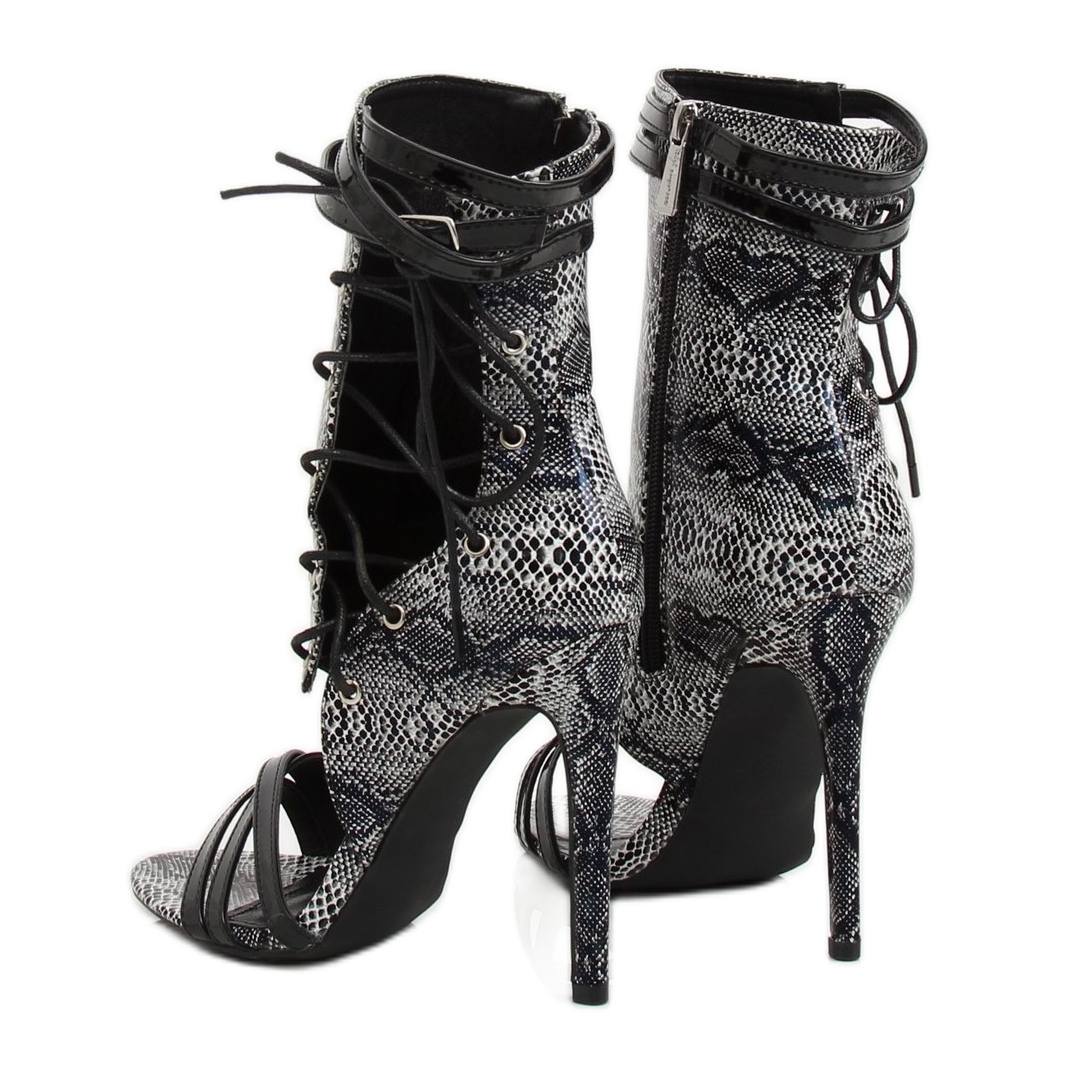 Esittelemme mustat käärmenahkaiset nilkkurit JR-041 Black - täydellinen valinta naisille, jotka haluavat korostaa ainutlaatuista persoonallisuuttaan ja lisätä hieman särmää vaatekaappiinsa! Nämä tyylikkäät kengät korkealla 12 cm korkilla ovat tarjous rohkeille ihmisille, jotka arvostavat muotihaasteita.