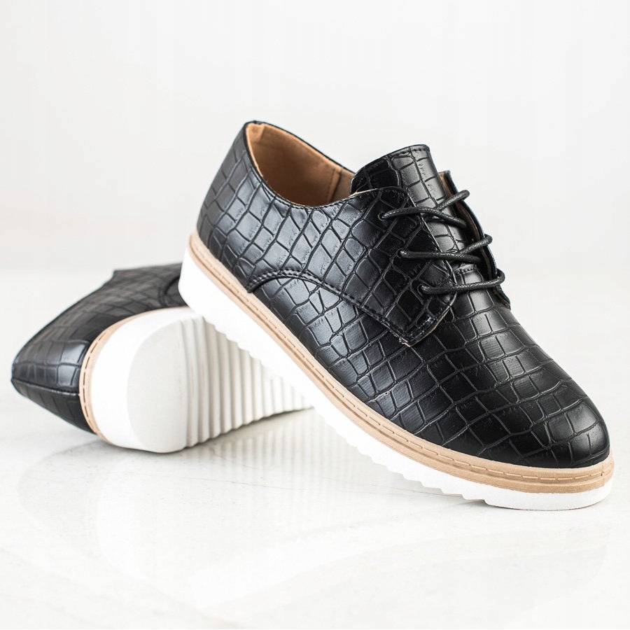 Näissä mustissa kengissä on myös ainutlaatuinen eläinkuvio, joka tekee niistä erottuvan. Pyöreän varpaan ansiosta jalat tuntuvat mukavalta niissä, ja nauhakiinnitys mahdollistaa täydellisen istuvuuden mihin tahansa jalkaan. SHELOVET naisten kengät ovat täydellinen valinta niin arkeen kuin tyylikkäämpiin tilaisuuksiin.