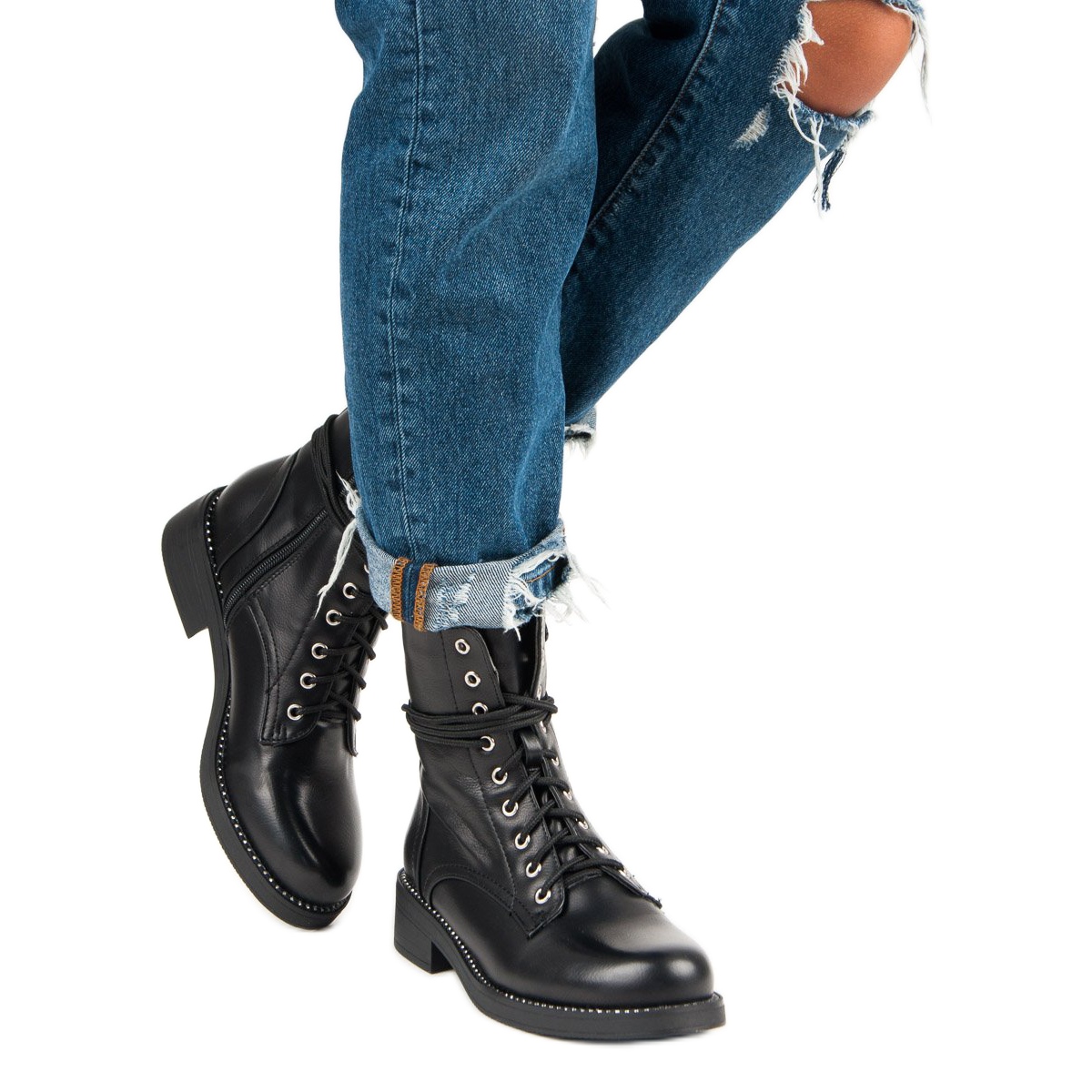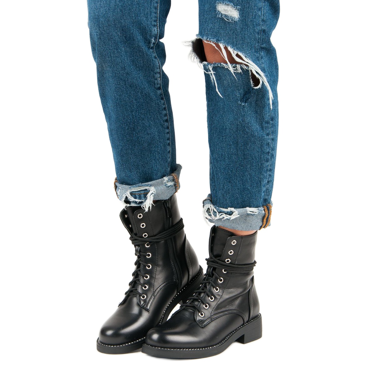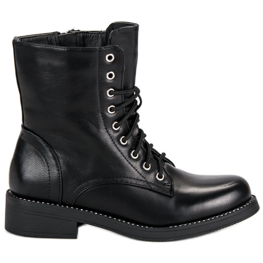 Työntekijöillä on litteä, 3,5 cm korkea kantapää ja pinnoitettu pohja, joka takaa vakauden ja pidon eri pinnoilla. Valmistettu ekologisesta, hieman kiiltävästä nahasta tyylikkäässä mustassa värissä, ne sopivat täydellisesti mihin tahansa tyyliin, arkisesta tyylikkäämpään.