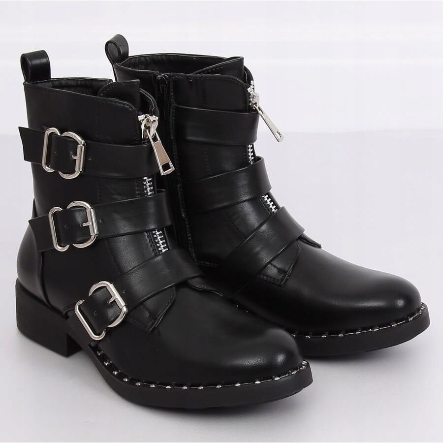 Tämä malli tekee vaikutuksen ainutlaatuisilla lisävarusteilla, kuten kahdella soljella varustetulla hihnalla ja keskellä kulkevalla vetoketjulla, jotka korostavat jalkineiden militaristista luonnetta. Lisäksi pohjan nastat antavat kengille rock-tyylikkään ilmeen, minkä ansiosta ne sopivat täydellisesti farkkujen, nahkahameiden ja väljien T-paitojen kanssa.