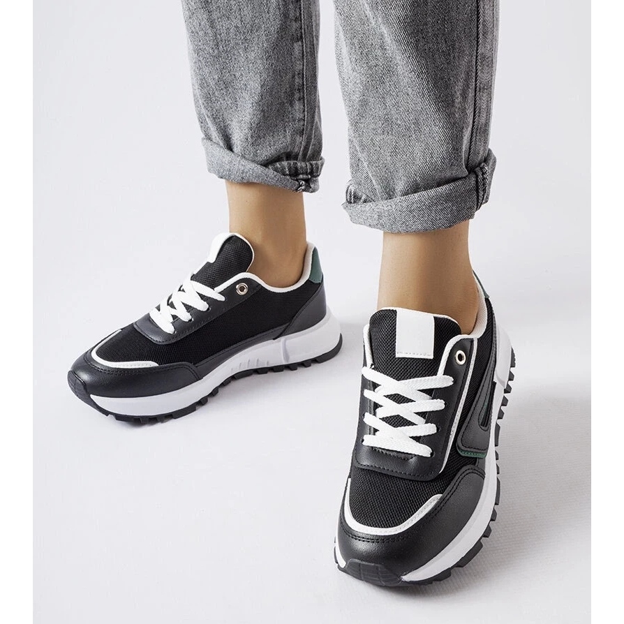 Yksityiskohdat: D/GMR Mustat tennarit, joissa vihreä aksentti Tod