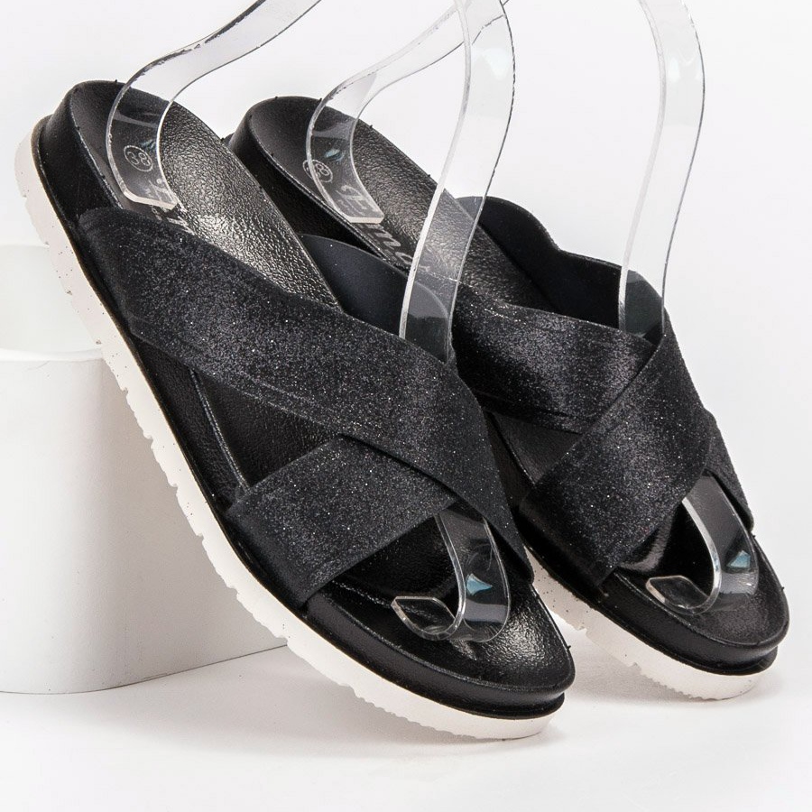 Lisää kiiltoa jokapäiväiseen vaatekaappiisi mustilla Emax-varvastossuilla, joissa on kimalleviimeistely. Nämä poikkeuksellisen mukavat varvastossut ovat täydellinen valinta kaikille naisille, jotka arvostavat mukavuutta yhdistettynä muodikkaan tyyliin.