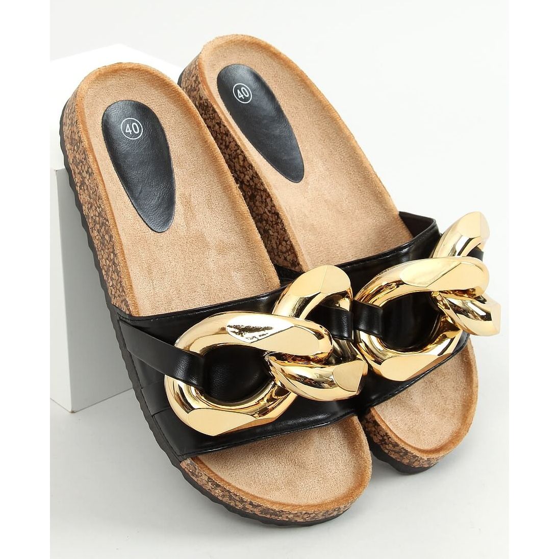 Inna marka Mustat tossut, joissa paksu ketju musta CK201 musta