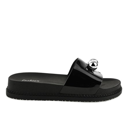 Pohja on viimeistelty mustalla narulla, mikä antaa kengille naisellista luonnetta, mikä tekee niistä ihanteellisen valinnan kesäpäiviin. Malli on saatavana klassisessa mustassa värissä, joten se on helppo yhdistää erilaisiin asuihin. Varvastossuissa on slip-on-muotoilu, joka varmistaa nopean ja helpon pukemisen.