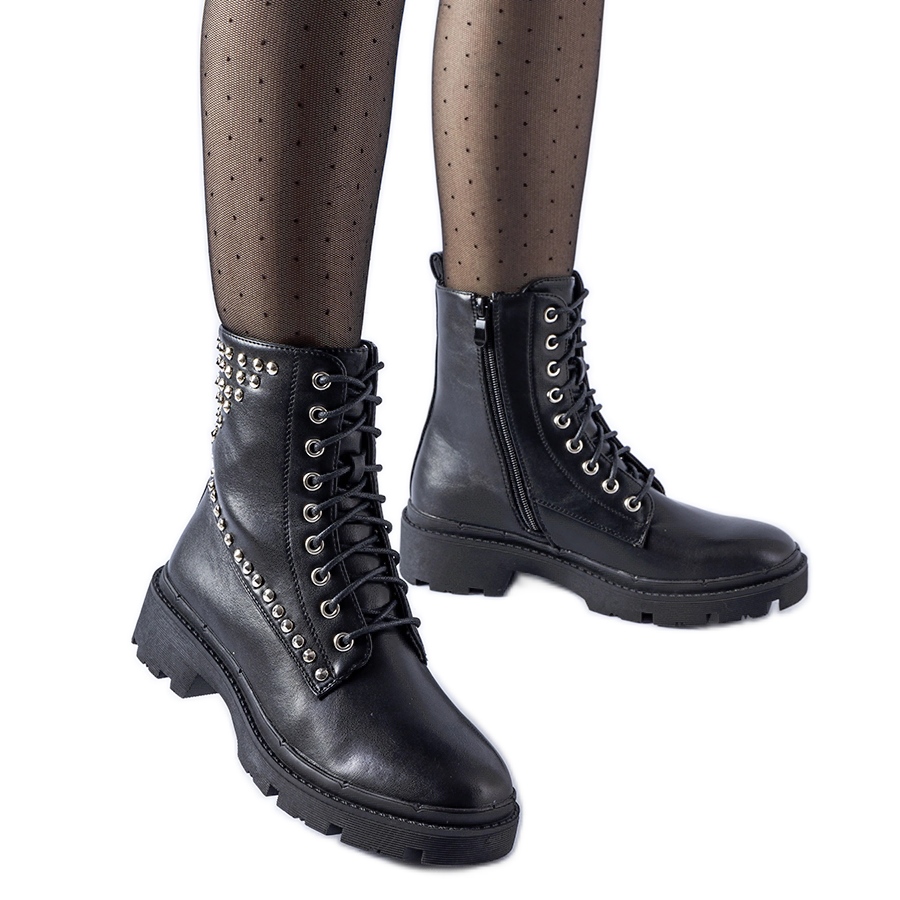 Inna marka Mustat työläissaappaat, jotka on koristeltu Bobbitt-nastoilla