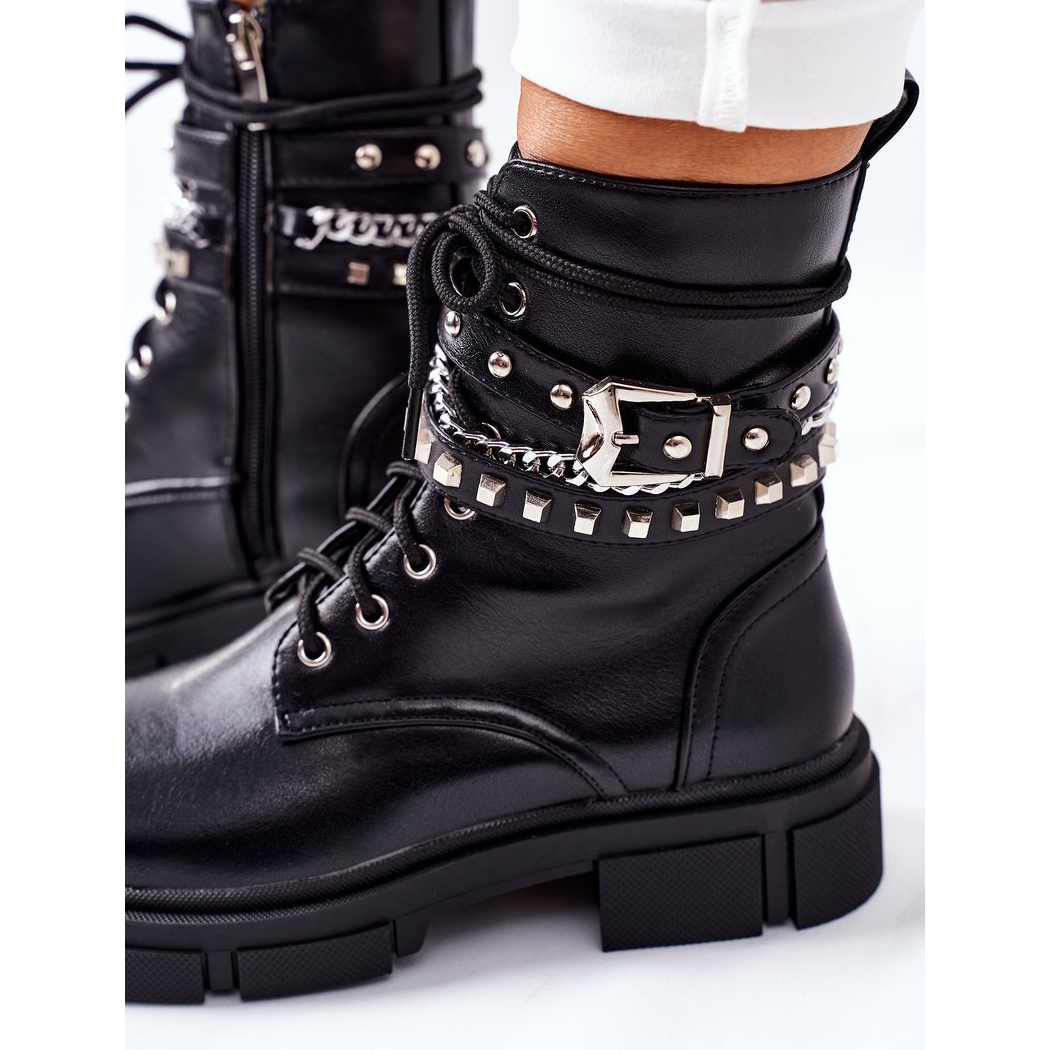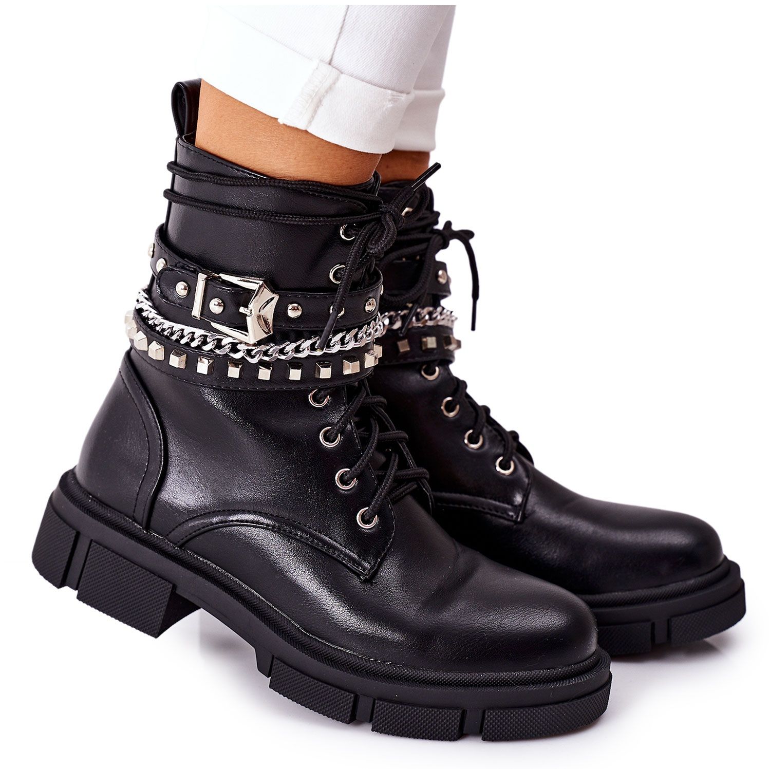 Tyylikäs vetoketju ja ylimääräinen solki tekevät näistä saappaista paitsi toimivia, myös katseenvangitsevia. Yläosan koristeellinen ketju antaa niille ainutlaatuisen luonteen, joka sopii täydellisesti viimeisimpiin muotitrendeihin. Pyöreän kärjen ja nilkkapituisen päällisen ansiosta nämä saappaat takaavat muodikkaan ulkonäön, mutta myös käyttömukavuuden koko päivän.