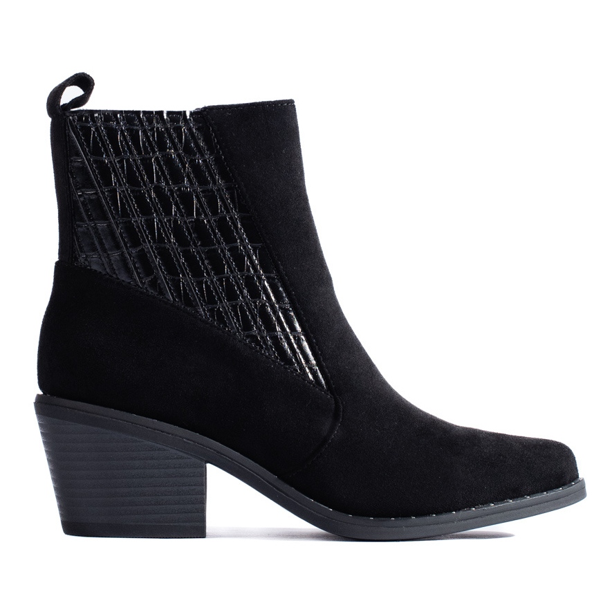 Mustat korkeakorkoiset SHELOVET-nilkkurit ovat eleganssia yhdistettynä välttämättömään mukavuuteen. Täydelliset naisille, jotka arvostavat universaalisuutta ja ajatonta muotoilua, ne ovat erinomainen valinta moneen tilaisuuteen.