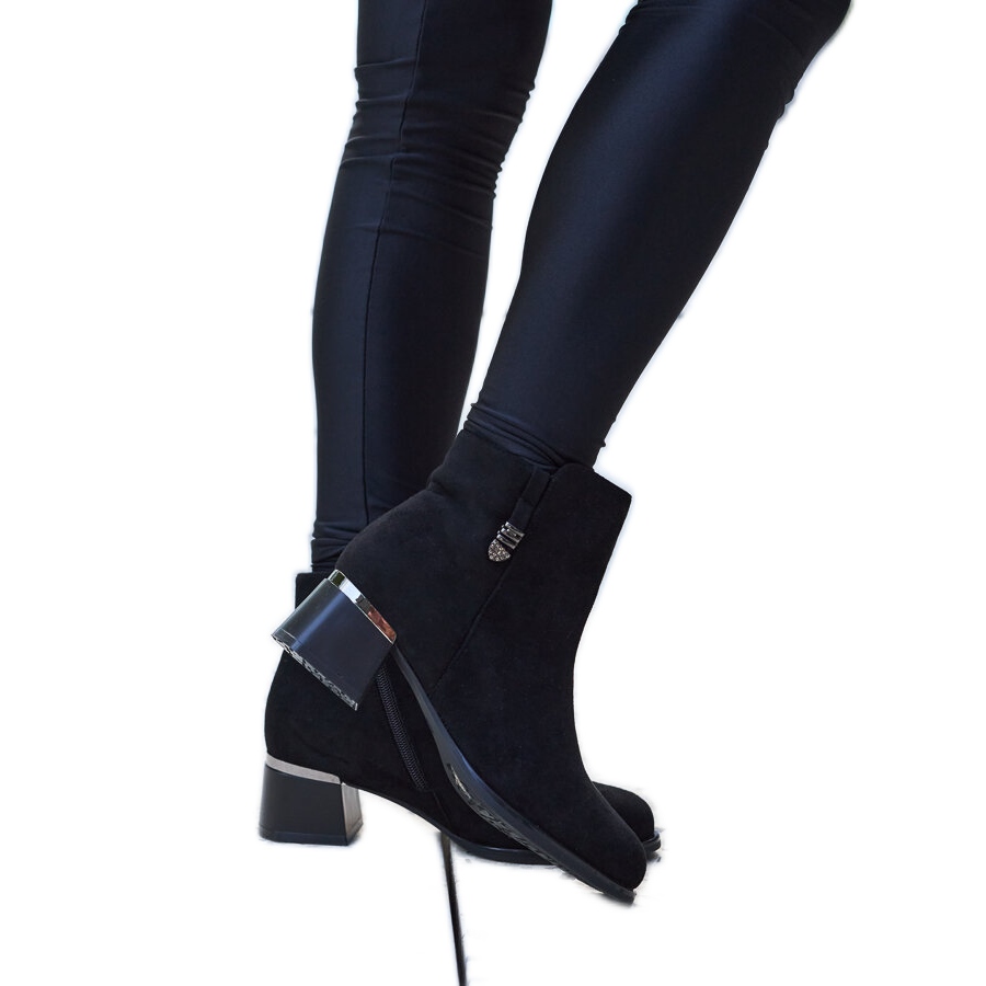Mustat tyylikkäät saappaat, joissa on Bocconi -zirkonia - yhdistelmä klassikkoja ja mahtava hehku. Asennettu leikkaus varmistaa mukavuuden koko päivän, kun taas mantelin varpaat ja keskikokoinen kantapää kuin lohko (5 cm) mallinavat hienovaraisesti kuvan lisäämällä luottamusta. Täydellinen syksy -villakaudelle - eristetty sisustus suojaa kylmiltä, ja mokkanahka ekologinen nahka mustalla mikrolla antaa tyylikkään, mattavaikutuksen.