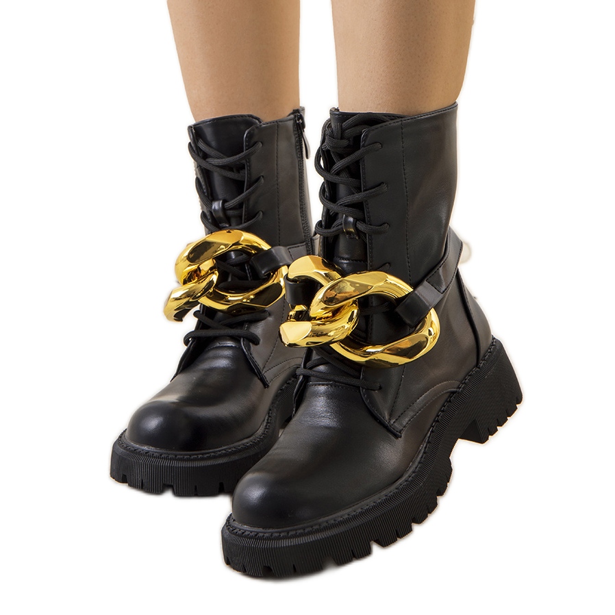 Nämä saappaat ovat ehdottoman välttämätöntä tällä kaudella. Raaka, ansaan tyylikäs, kultainen ketju antaa muodikkaan ja universaalin vaikutuksen. Korkealaatuisesta ekologisesta nahasta valmistettu ylempi varmistaa mukavuuden ja kestävyyden sekä kumipohjaisen stabiilisuuden joka päivä.