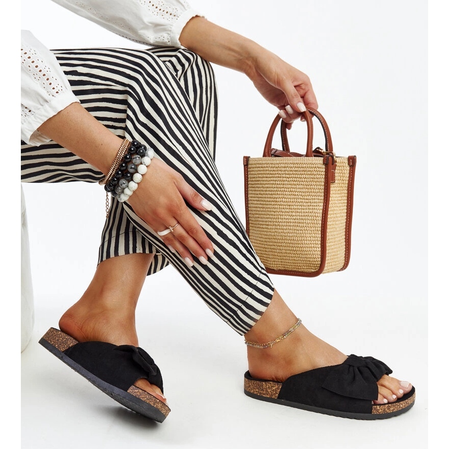DF858 malli erottuu tyylikkäästä rusetista, joka lisää siihen naisellista charmia. Pyöreä kärki ja korkokenkien puute tekevät varvastossoista käytännölliset ja mukavat, ja ne sopivat täydellisesti niin arkeen kuin kesän tapaamisiin ystävien kanssa. Ekologisesta mokkanahkasta valmistetut ne näyttävät tyylikkäiltä klassisen mustana, joka sopii helposti mihin tahansa kesätyyliin.