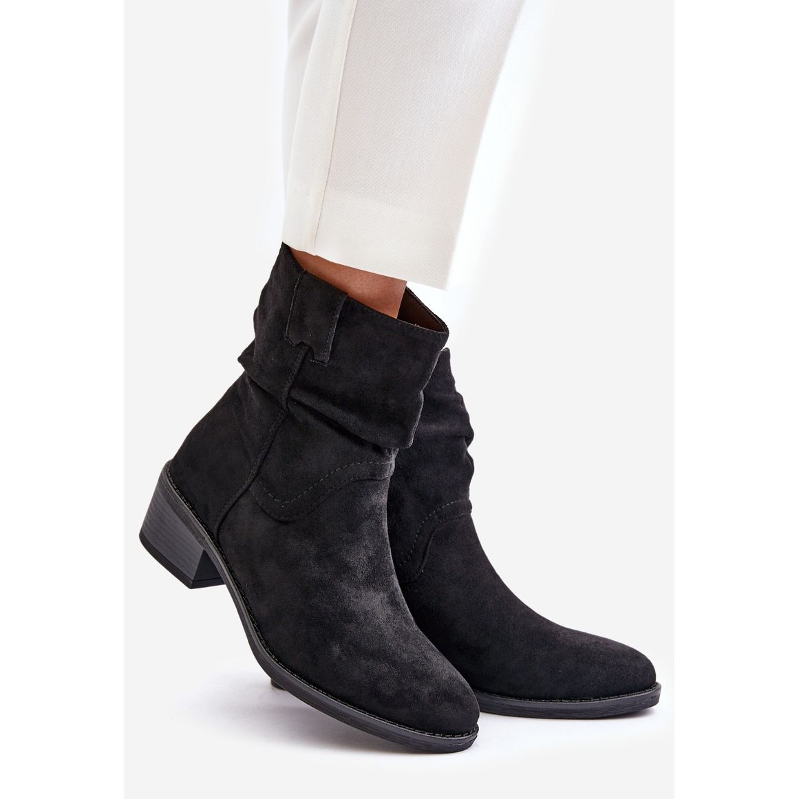 Yksityiskohdat: Mustat Zinanya-eristetyt naisten nilkkurit, joissa on ryppyinen matala kantapää