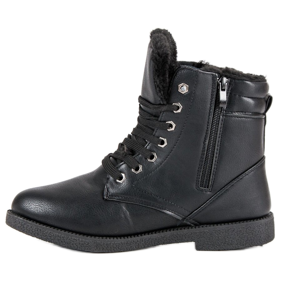 Mustat työntekijät ovat nauhoitettuja ja niissä on vetoketju, jonka ansiosta ne on helppo pukea ja riisua. Kengän korkeus ulottuu nilkan yläpuolelle, mikä takaa lisäksi lämmön ja vakauden. Valmistettu synteettisistä materiaaleista, ne on helppo puhdistaa eivätkä vaadi monimutkaista hoitoa.