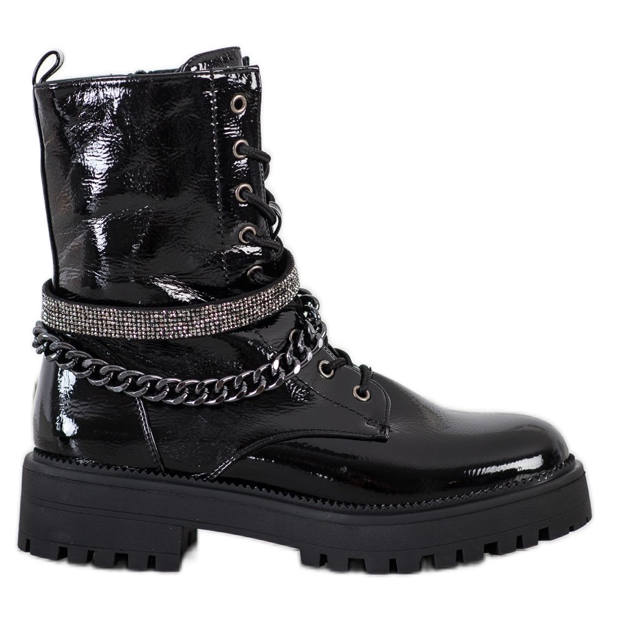 Esittelemme Seastar Black Workers with Chain - täydellisen yhdistelmän eleganssia ja rock-tyyliä, täydellinen jokapäiväiseen käyttöön. Nämä muodikkaat saappaat, jotka ovat saatavilla klassisen mustan värisenä, erottuvat koristeellisesta ketjusta ja hienovaraisista kristalleista, jotka antavat niille ainutlaatuisen luonteen.