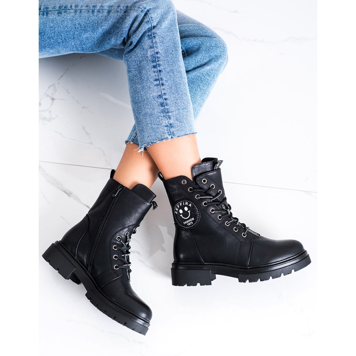 Tutustu Eventon työntekijöiden tarjoamaan mustaan eleganssiin ja mukavuuteen sovelluksen avulla. Nämä ainutlaatuiset nilkkurit ovat täydellinen valinta naisille, jotka haluavat yhdistää tyylin ja mukavuuden päivittäisessä tyylissään. Valmistettu 100 % ekologisesta nahasta, ne näyttävät erittäin houkuttelevilta ja kiinnittävät huomiota yksityiskohdilla.