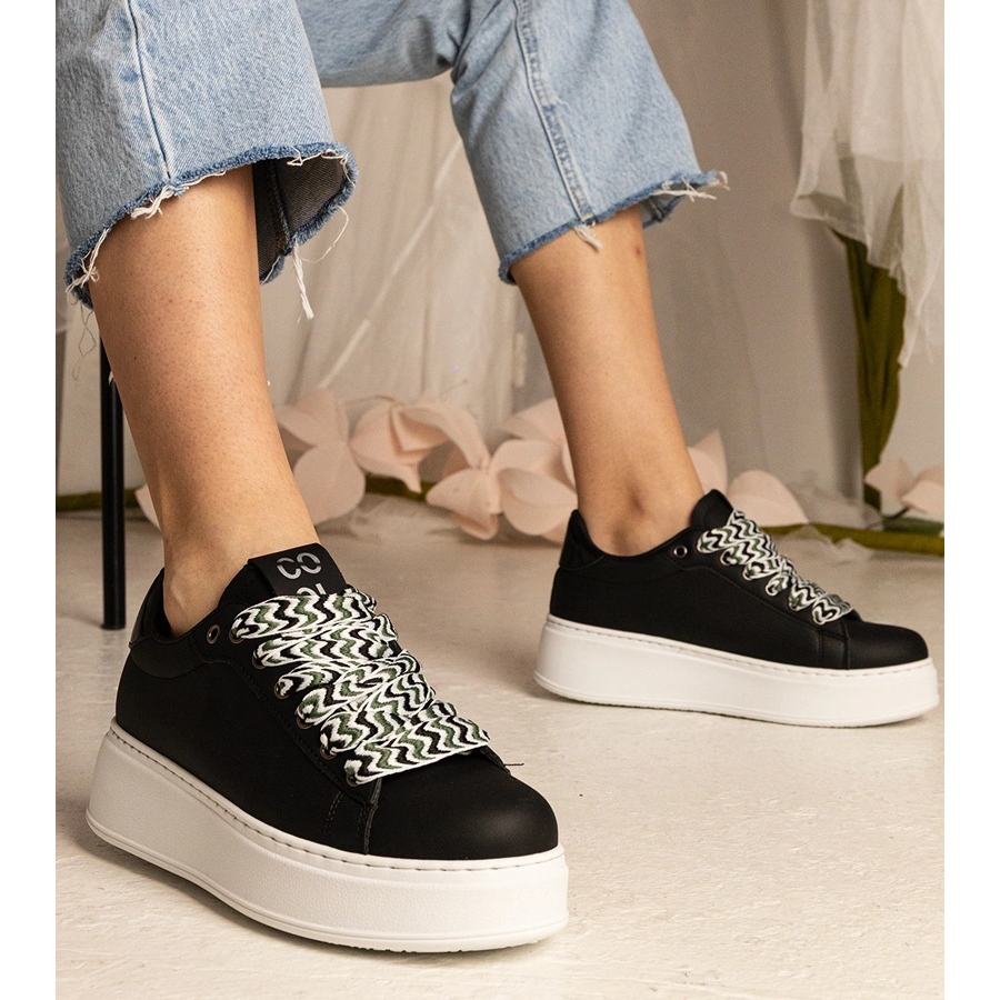 Inna marka Mustien naisten lenkkarit, joilla on massiivinen nauhoitus = musta