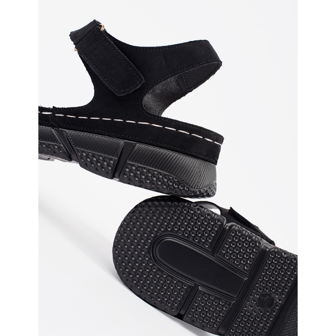 Käytännössä tarranauhan kiinnitettynä nämä sandaalit helpottavat laittaa ja antaa sinun sovittaa tarkasti jalan muotoa. Klassinen musta väri tarkoittaa, että ne vastaavat erilaisia asuja - ilmaisista mekkoista rento farkut.