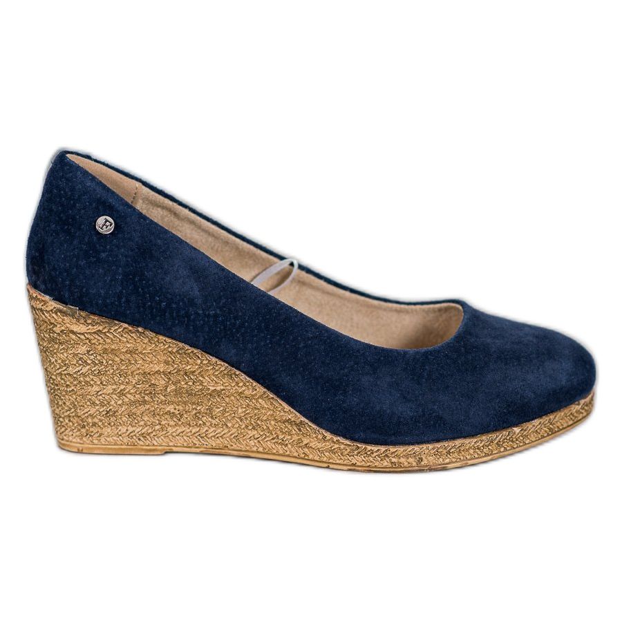 Löydä eleganssia ja mukavuutta Filippon kiilapumpuilla. Nämä upean siniset naisten kengät on valmistettu korkealaatuisesta luonnonnahasta, mikä tekee niistä paitsi kestäviä, myös erittäin mukavia käyttää. Niiden sileä pinta näyttää tyylikkäältä, ja hienovarainen korostus metallisen, pyöreän pidikkeen muodossa sivulla lisää omaperäisyyttä.