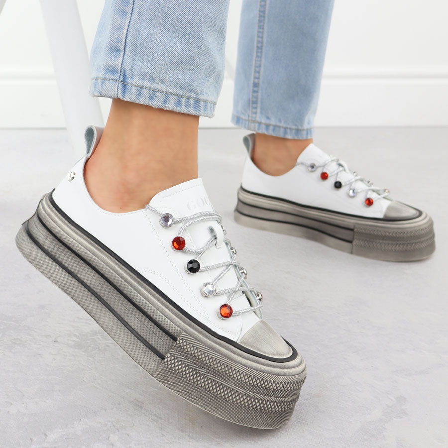 Yksityiskohdat: Nahka -lenkkarit valkoisella goe nn2n4054 -alustalla valkoinen
