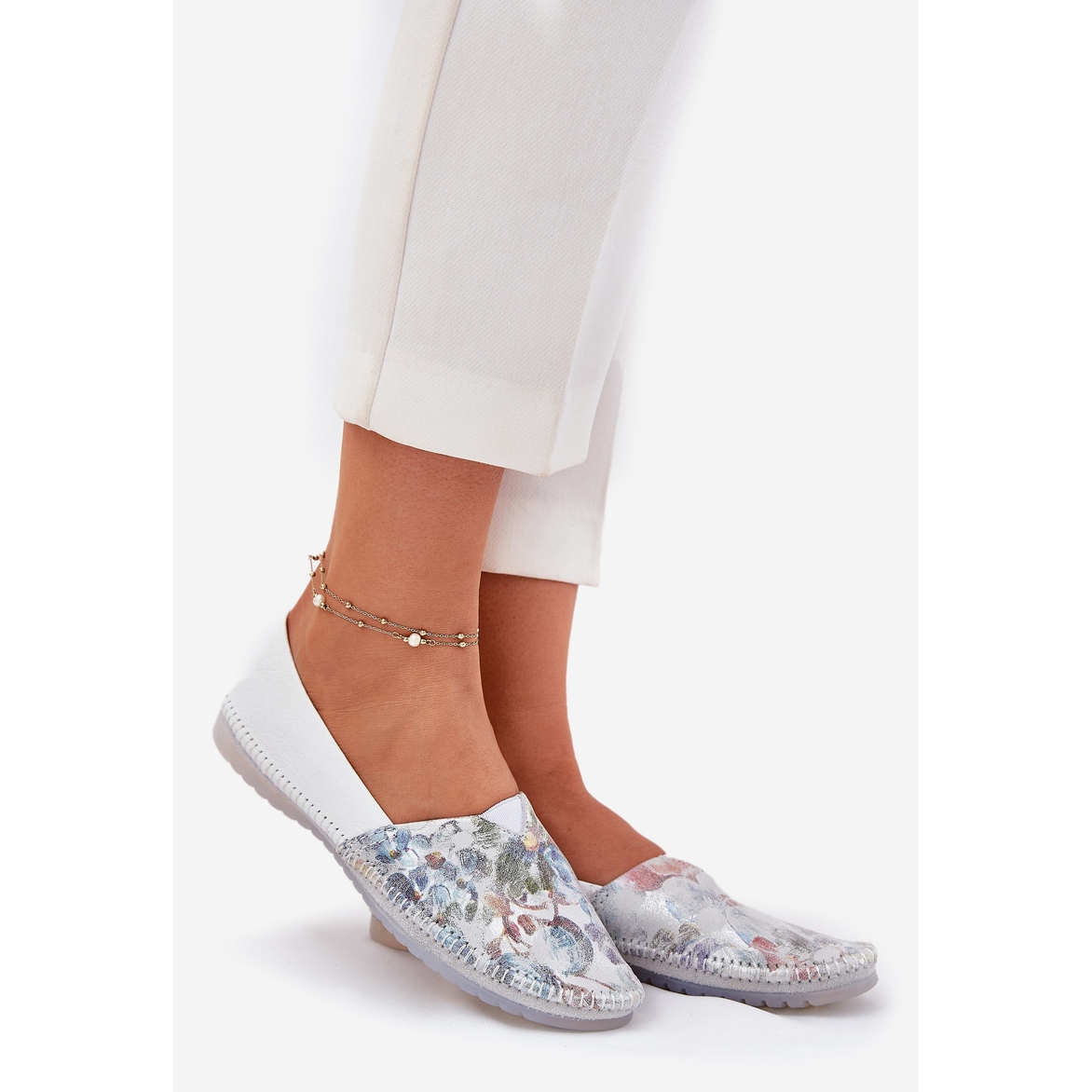 Nahkaballeriinit, joissa on kuvio, että maciejka T1930-38 valkoisella sävyllä on loistava valinta naisille, jotka arvostavat eleganssia ja mukavuutta. Nämä kevyet, litteät kengät on valmistettu korkealaatuisesta luonnonahasta, mikä varmistaa niiden kestävyyden ja mukavuuden käyttää koko päivän.