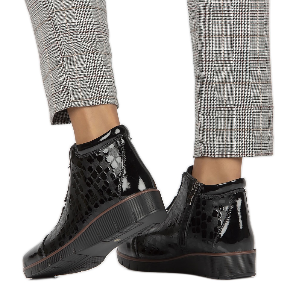 Filippo PAW277A saappaat erottuvat myös viehättävästä 3,5 cm korkeasta kiilasta, joka lisää keveyttä ja pidentää optisesti lahkeita. Pyöreä nenä ja lakattu viimeistely antavat niille omaperäisen luonteen, ja eläinkuvio korostaa modernia muotoilua.