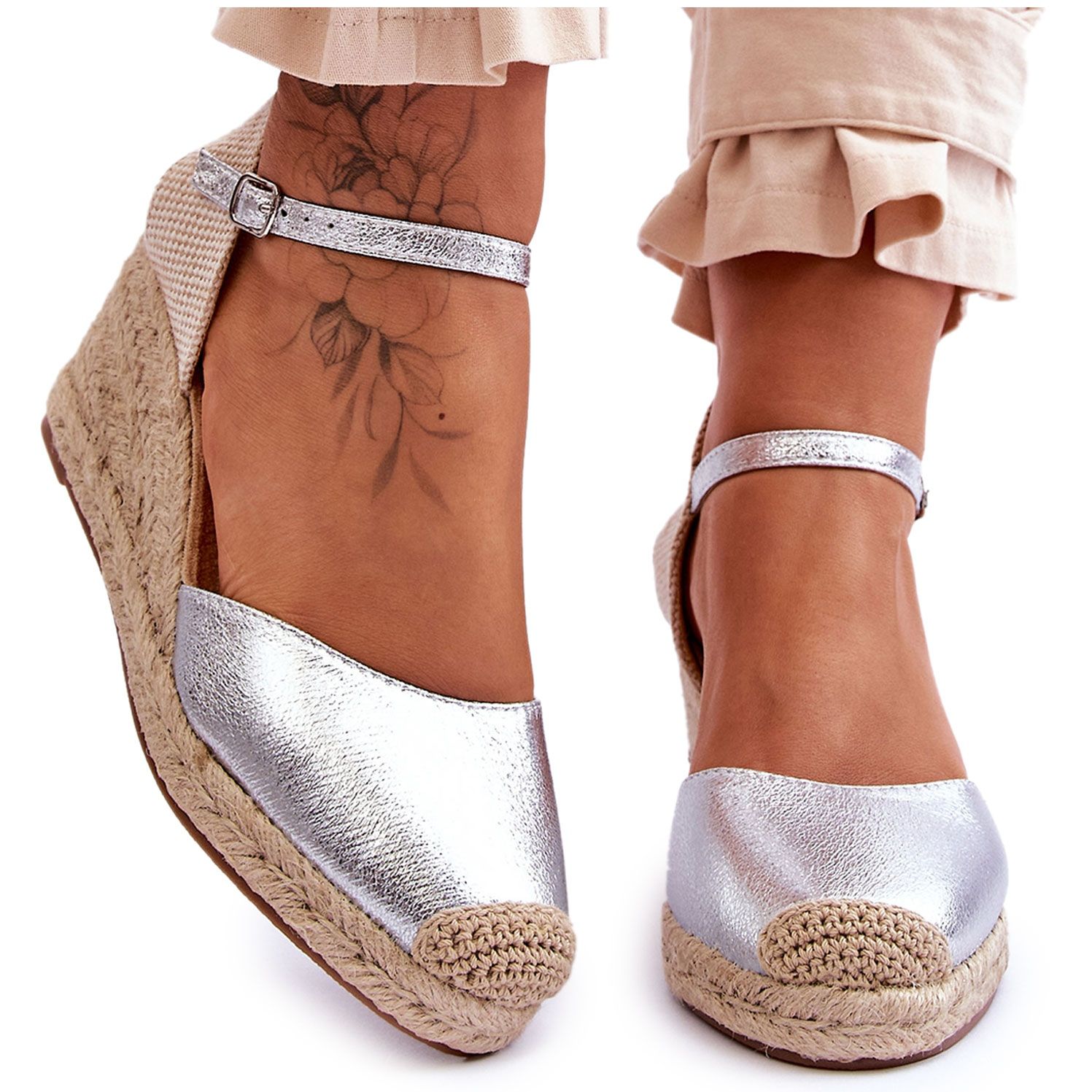 Yksityiskohdat: Nahkainen Espadrilles Wedge Sandaalit Hopeakamera
