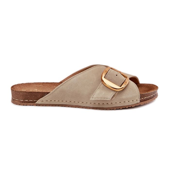 Maciejka Nahkainen flops, jossa on kultainen puristus Maciejka 07000-22 pistaasipähkinä vihreä