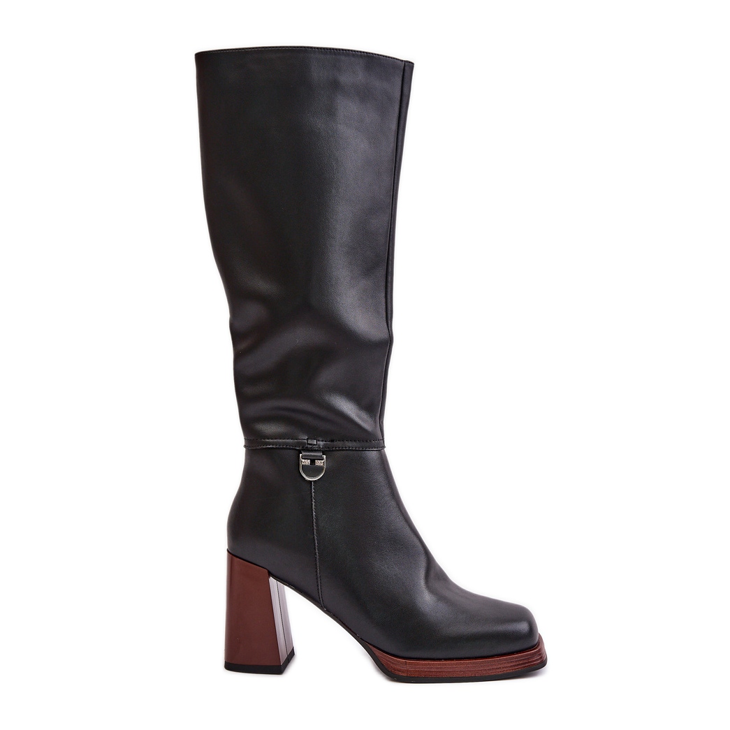 Nämä polville ulottuvat saappaat upotetaan vakaan kantapäähän postin muodossa, joka on 9 cm korkea, mikä vaikuttaa luokan ja tyylin mukavuuden mukavuuteen ja lisää. Klassinen neliön nenä antaa heille modernin hahmon, ja vetoketju helpottaa laittaa ja nousta.