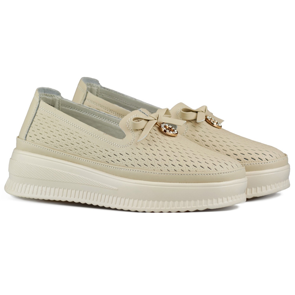 Yksityiskohdat: Nahkaiset harjakattoiset kengät naisille, mukavat mokasiinit luonnonnahasta beige
