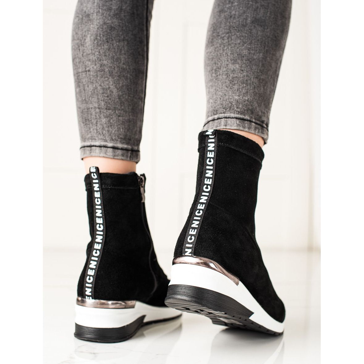 Rento tyyli ilman kuviointia saa nämä saappaat sopivat yhteen sekä farkkujen että mekkojen kanssa, ja niiden tyylikäs musta väri lisää universaalisuutta. Vetoketju helpottaa kenkien pukemista ja riisumista, mitä jokainen aktiivinen nainen varmasti arvostaa.