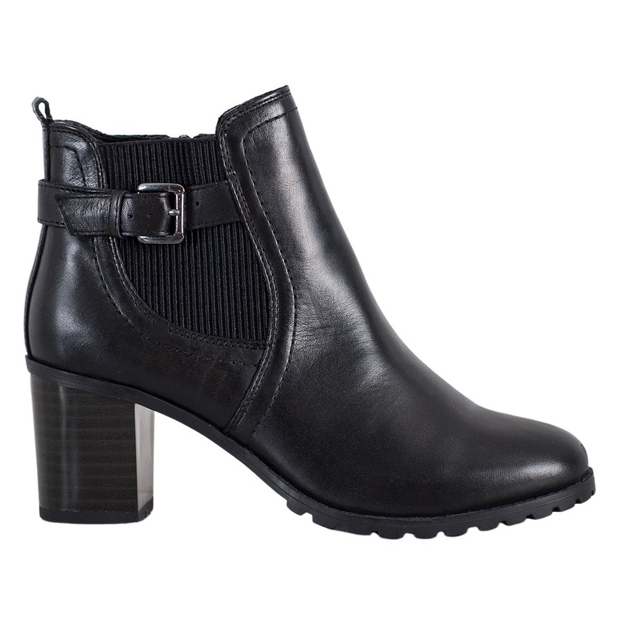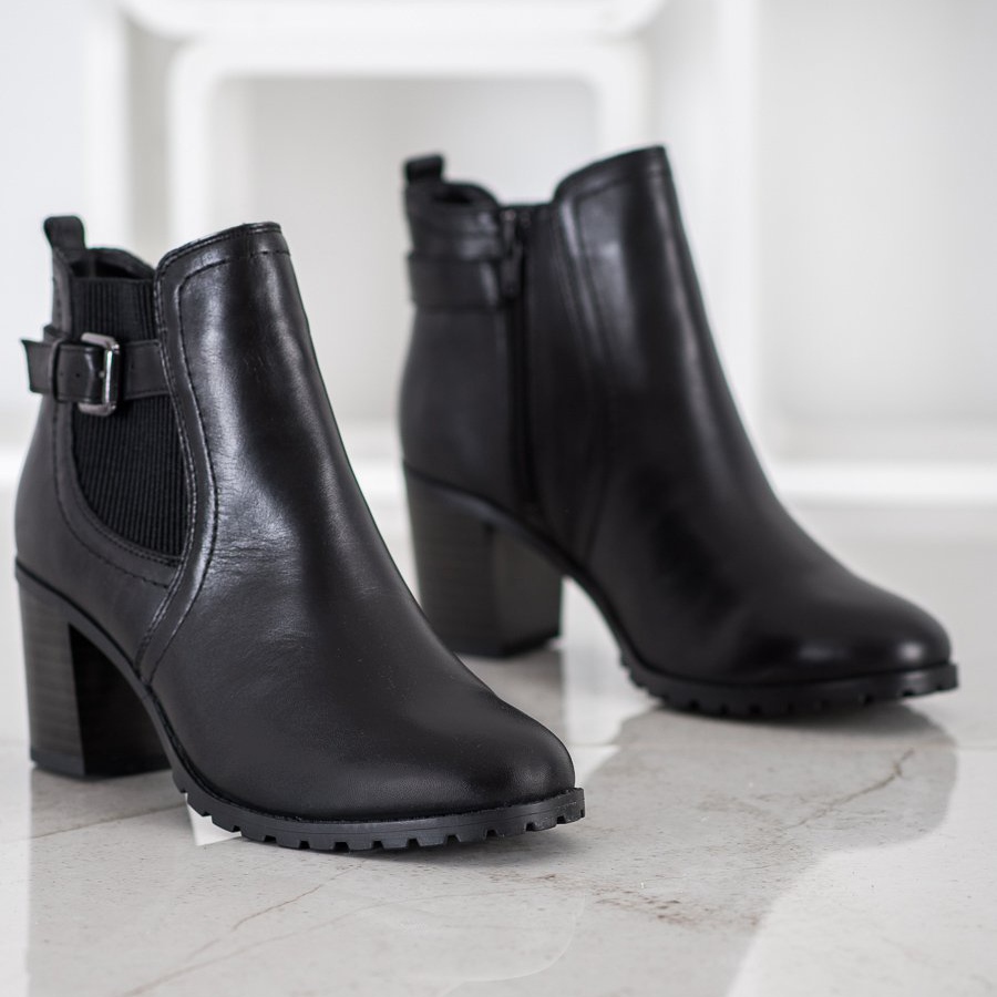 Luonnonnahasta valmistetut nilkkurit tarjoavat paitsi erinomaisen laadun, myös tyylikkään ulkonäön. Pyöreä kärki ja 7 senttimetrin kantapää lohkon muodossa takaavat vakauden ja käyttömukavuuden, ja jäykistetty kantapää lisää luottamusta askeleihisi. Lämmin sisäinen eristys tekee saappaista täydelliset kylmempään päivään, ja sisällä oleva tekstiilimateriaali lisää käyttömukavuutta.