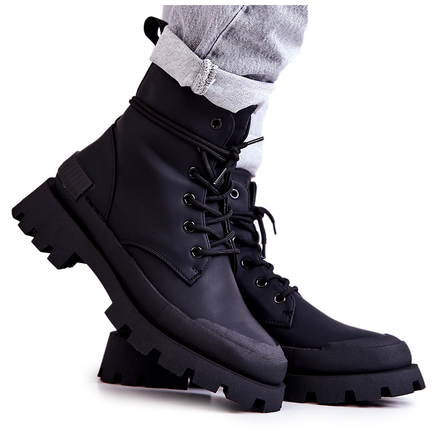 Inna marka Nahkaiset lämpimät saappaat sidottu musta Racquell