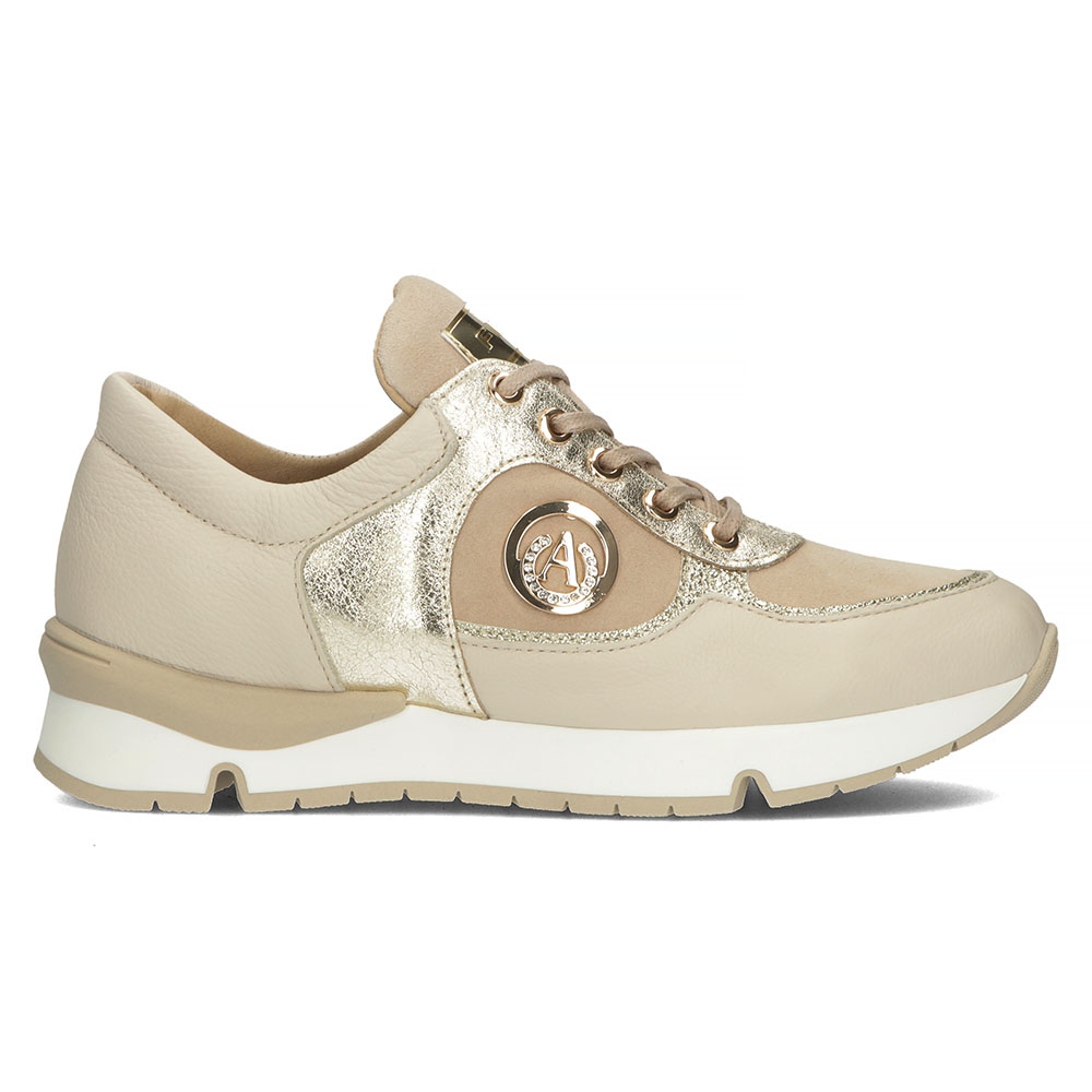 1 cm korkea alusta tarjoaa lisävaimennusta, ja tasainen kantapää tekee näistä kengistä täydelliset jokaiseen päivään. 7 cm korkea päällinen korostaa täydellisesti lahkeen linjaa ja beige väri tekee tennareista helposti yhdistettäviä eri tyyleihin - sekä arkisoihin että tyylikkäämpiin.