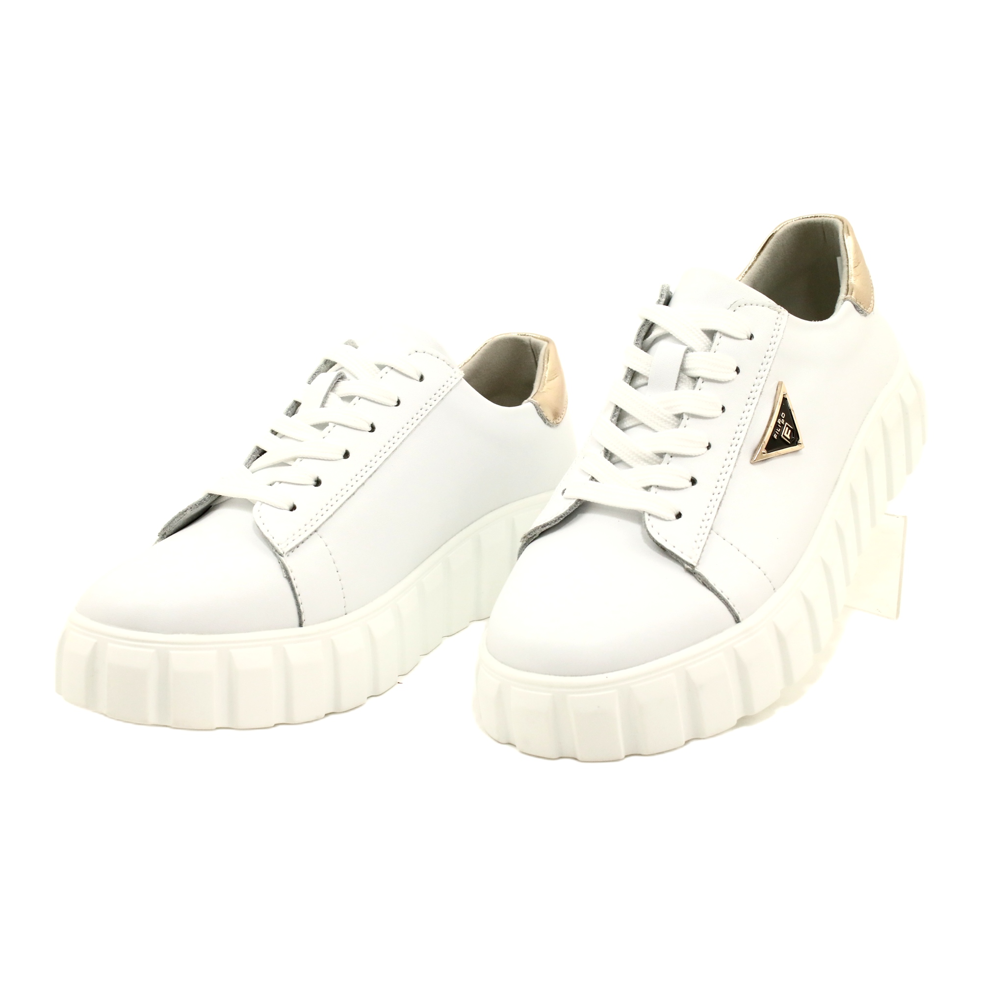 Löydä lenkkari, joka kohottaa päivittäisiä jalkineitasi Filippon senzaconal-nahkaisilla nauhalenkeillä, jotka ovat valkoisia ja kultaisia, malli DP4138. Nämä naisten kengät eivät vain häikäise ulkonäöllään, vaan tarjoavat myös mukavuutta ja toimivuutta, jotka ovat välttämättömiä aktiivisille, tyylikkäille naisille.