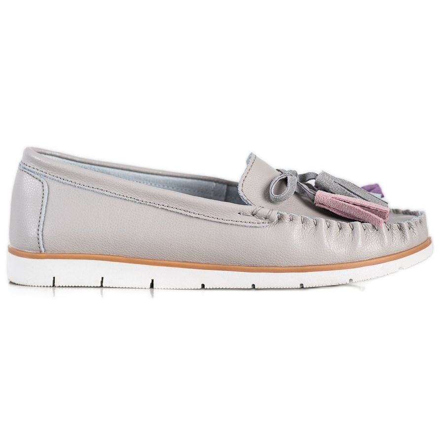 Evento mokkasiinit erottuvat viehättävästä yksityiskohdasta - koristeellisesta rusetista, joka on viimeistelty värikkäillä hapsuilla, joka houkuttelee katsetta ja lisää keveyttä kokonaisuuteen. Sisäänrakennettu pehmeä kantapäätaskuri varmistaa mukavuuden käytön aikana, joten ne ovat ihanteellinen valinta jokapäiväiseen käyttöön. Synteettinen, litteä pohja kulutuspinnalla tarjoaa vakautta ja mukavuutta, joten voit nauttia jokaisesta askeleesta.