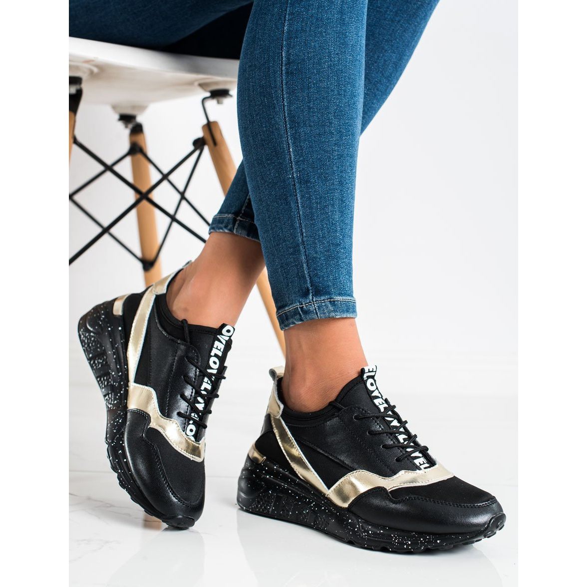 Yksityiskohdat: S. BARSKI Nahkaiset lenkkarit, S.BARSKI musta kultainen