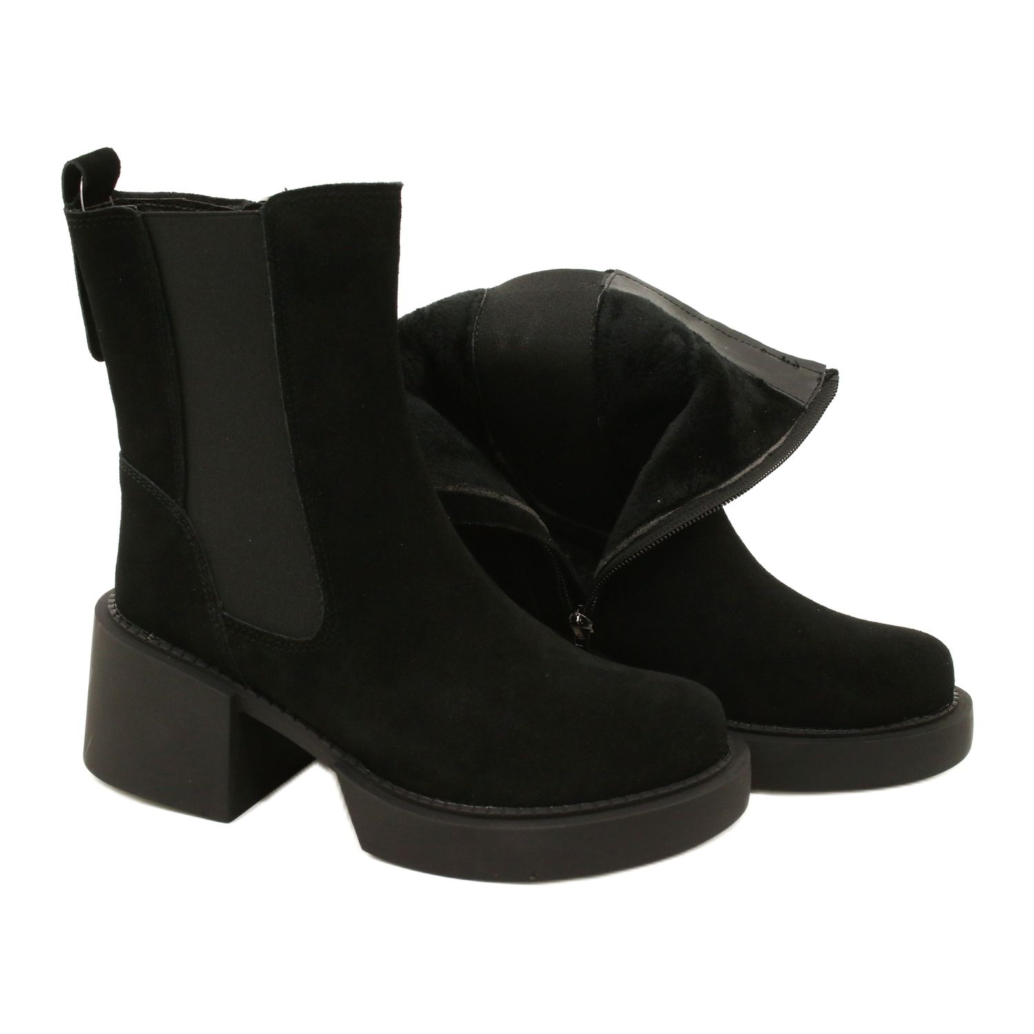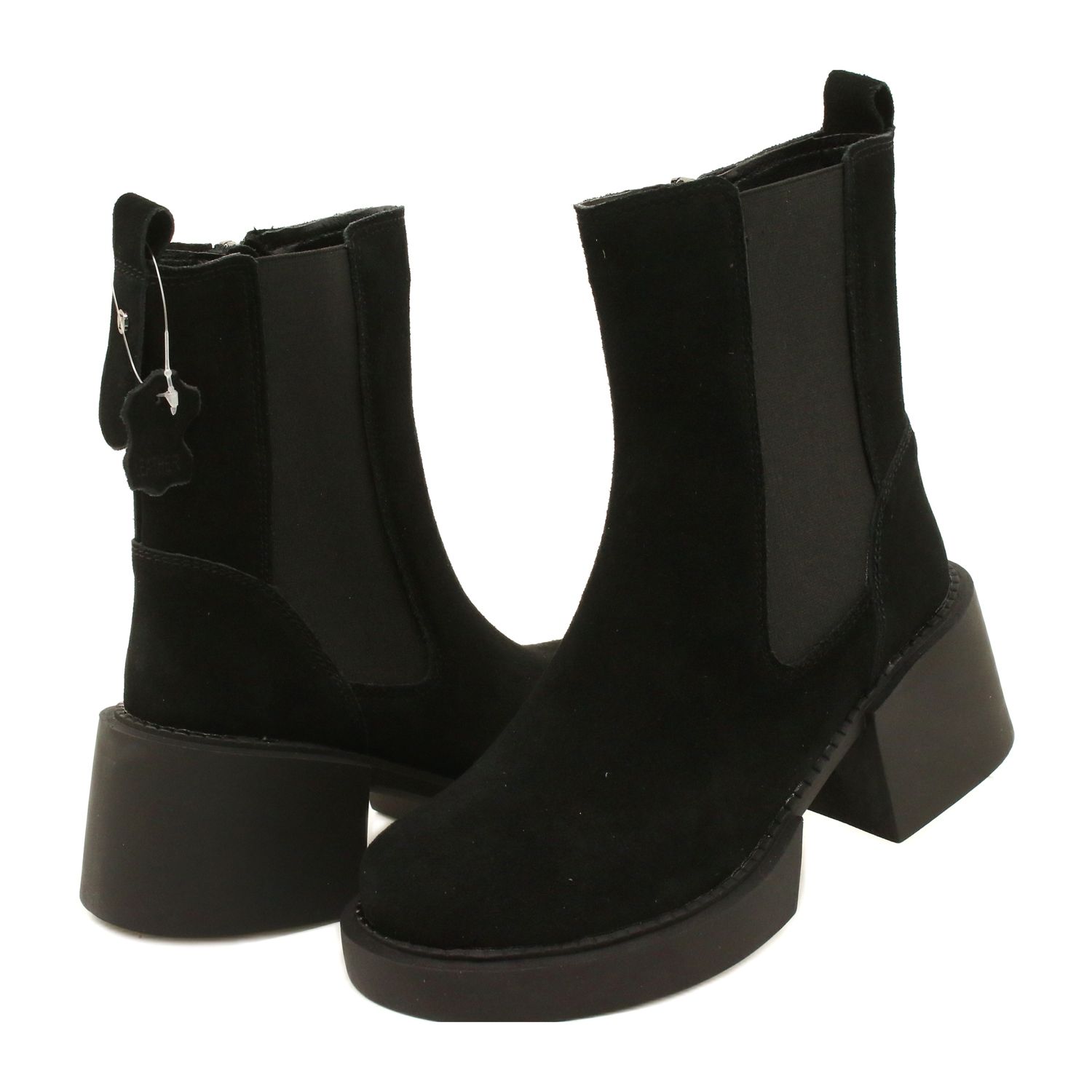 - Malli: Nahkaiset mokkanahkaiset korkeakorkoiset saappaat, mustat