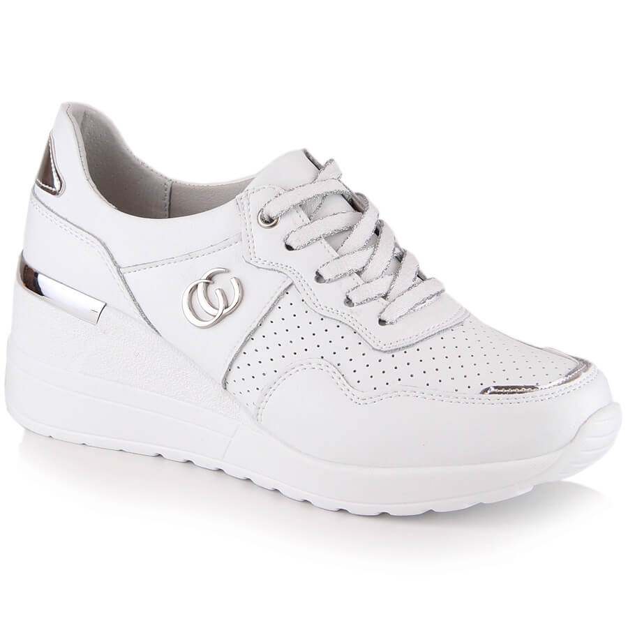 Yksityiskohdat: Nahkaiset mukavat naisten kiilakengät valkoiset tennarit S.Barski LR29169 valkoinen