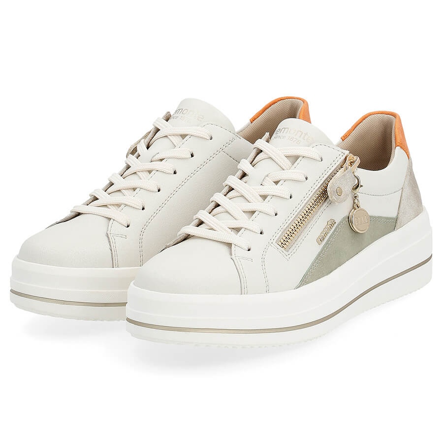 Yksityiskohdat: Nahkaiset mukavat naisten urheilukengät, beige Remonte D1C01-81