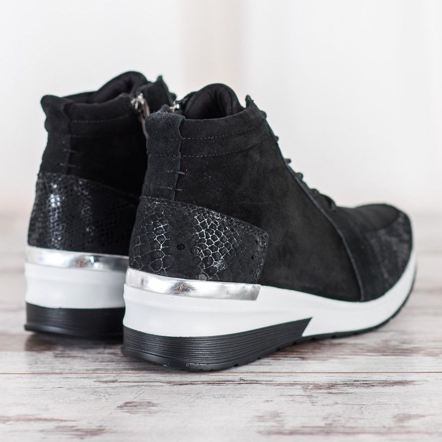 Nauhoituksen ja vetoketjun ansiosta saappaat istuvat täydellisesti jalkaan ja niiden rakenteellinen ja pehmeä kantapää korostaa kokonaisuuden estetiikkaa. Lisäksi tämä malli ei vaadi eristystä, joten se on ihanteellinen valinta siirtymäkauteen. Ilman kuviota, klassisissa mustissa väreissä, näistä nilkkureista tulee varmasti vaatekaappisi yleinen elementti.