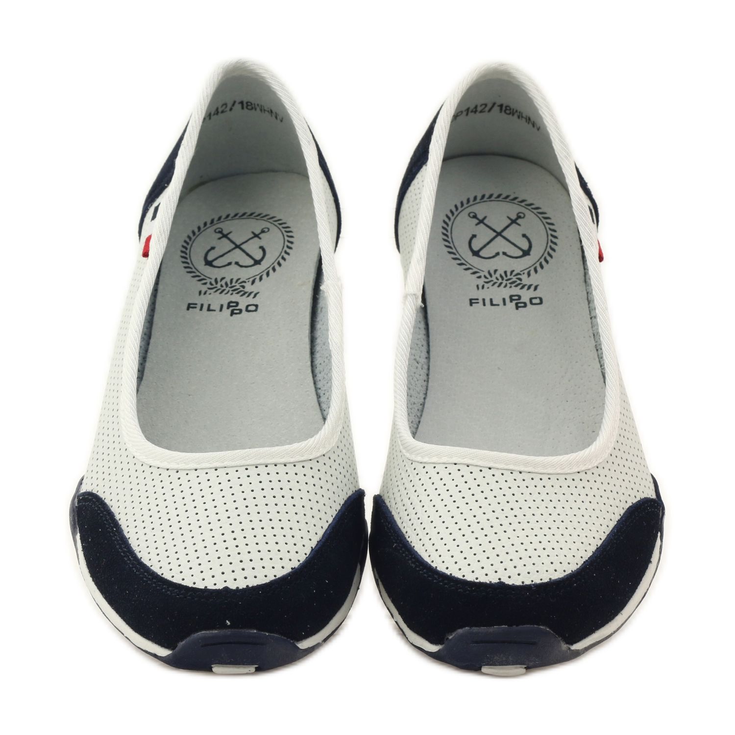 Löydä eleganssia ja mukavuutta Filippo naisten nahkabalettiasuissa valkoisena ja laivastonsinisenä. DP142-malli on täydellinen valinta kevät- ja kesäpäiviin, jolloin mukavuus ja tyyli ovat etusijalla.