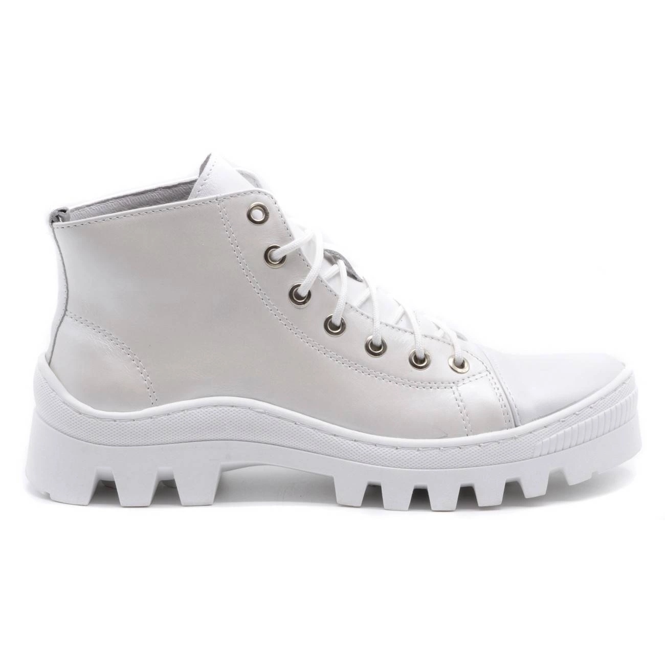 Polbut Nahkaiset naisten saappaat D1 valkoiset, valkoinen pohja